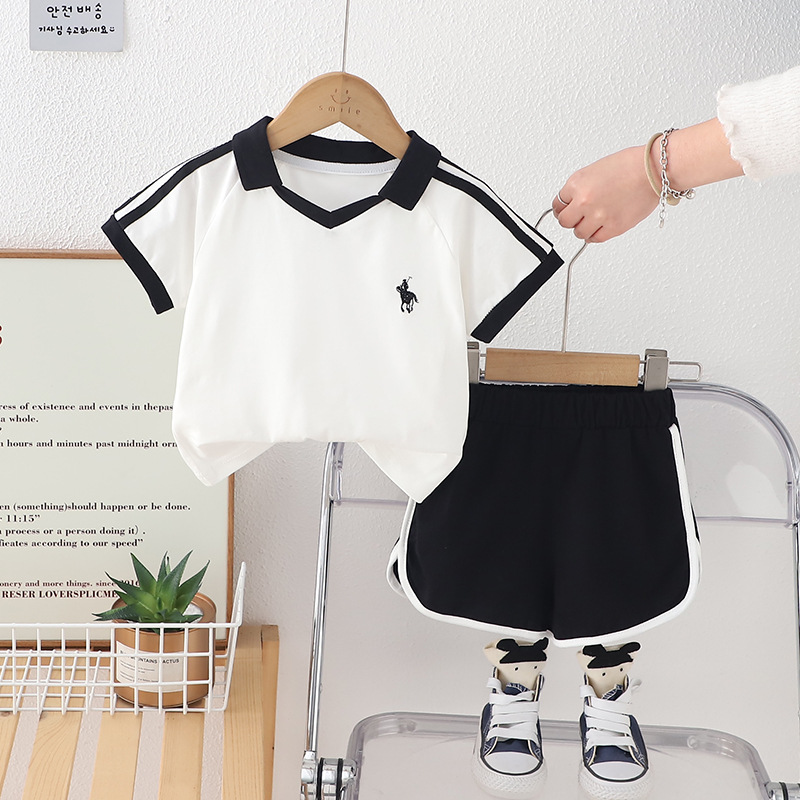 소년 여름 옷 세트 2025 새로운 스타일 아기 여름 옷 아기 아동복 스포츠 반팔 투피스 유행