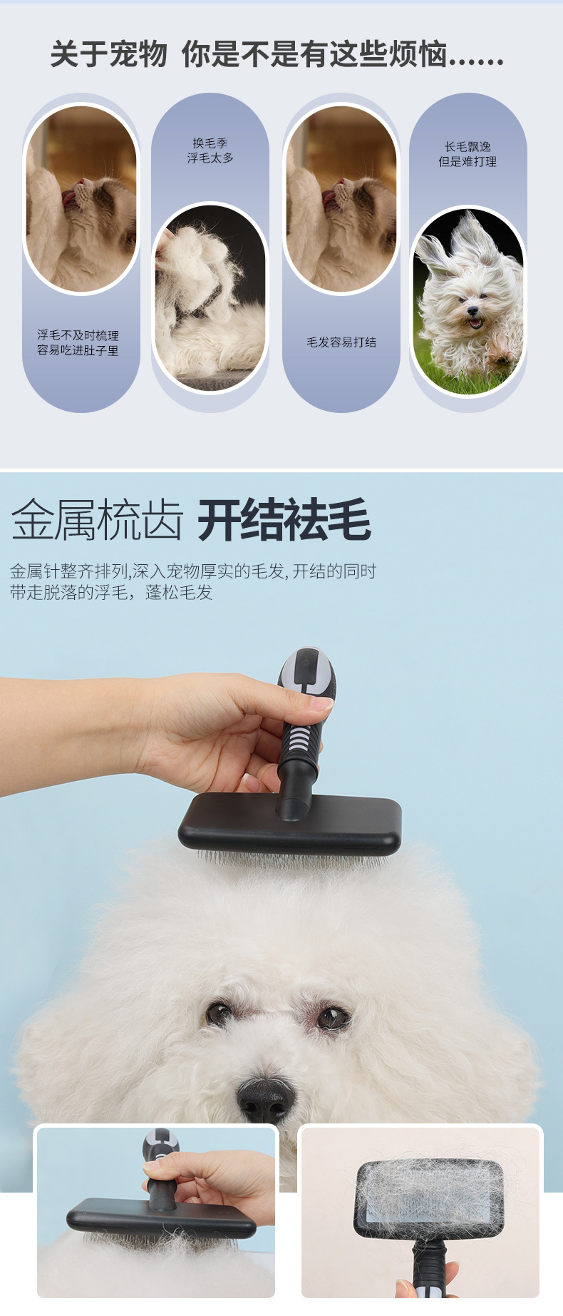 애완 동물 머리 개 오픈 매듭 빗 고양이 빗 애완 동물 용품 공장 도매 부동 머리 빗 빗 고양이 제거스토어 가기