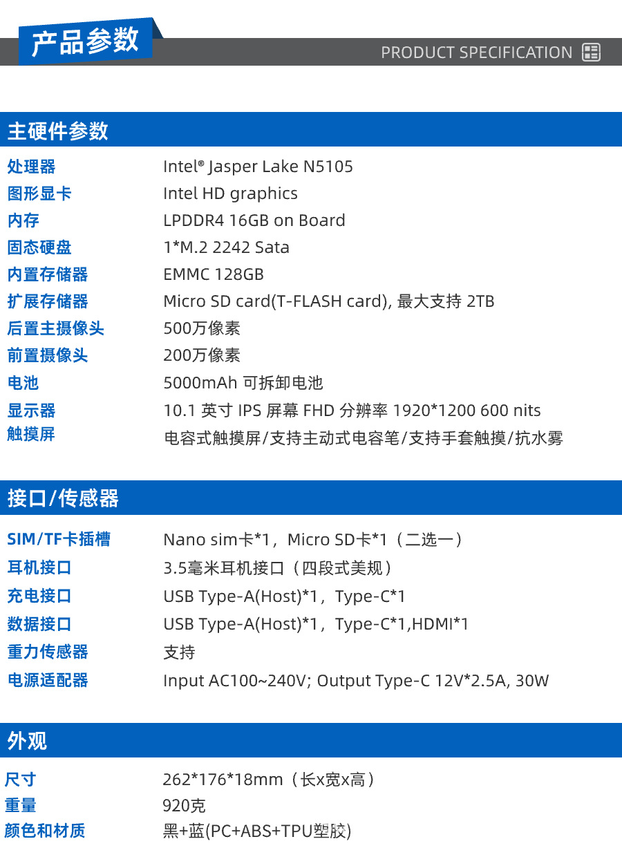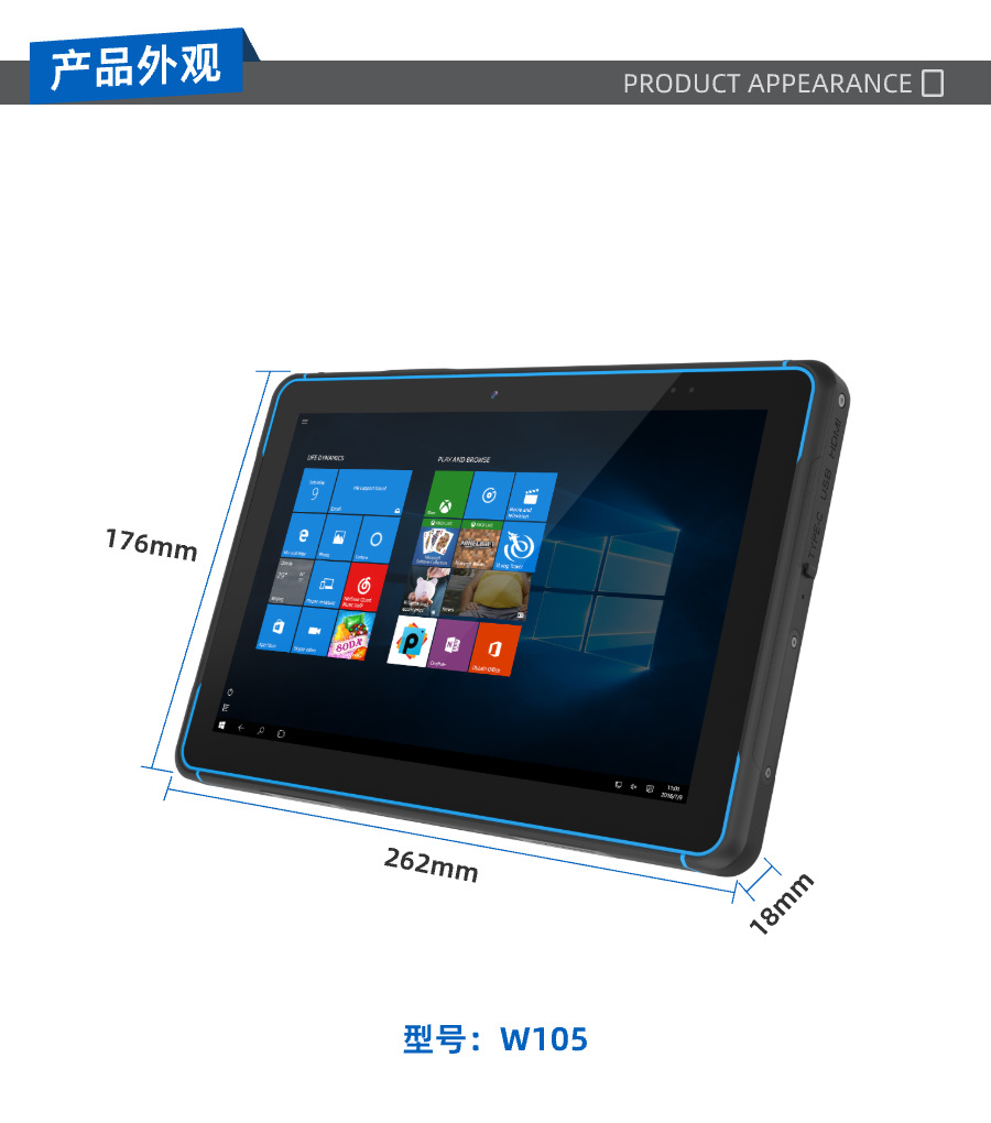 • W105-X10/16+128G/검정색+파란색/1920*1200/600nits/ Wi-Fi 6/TPM