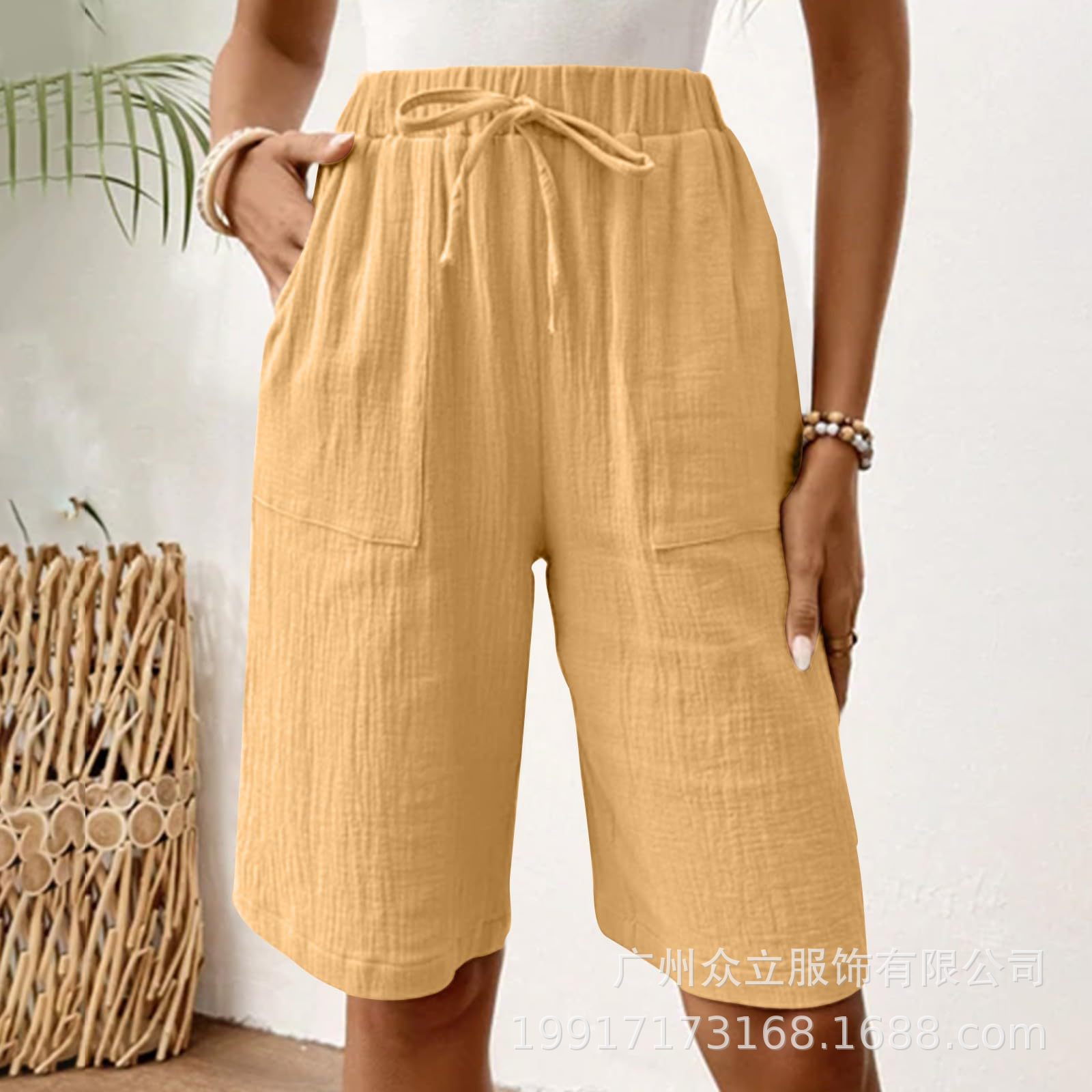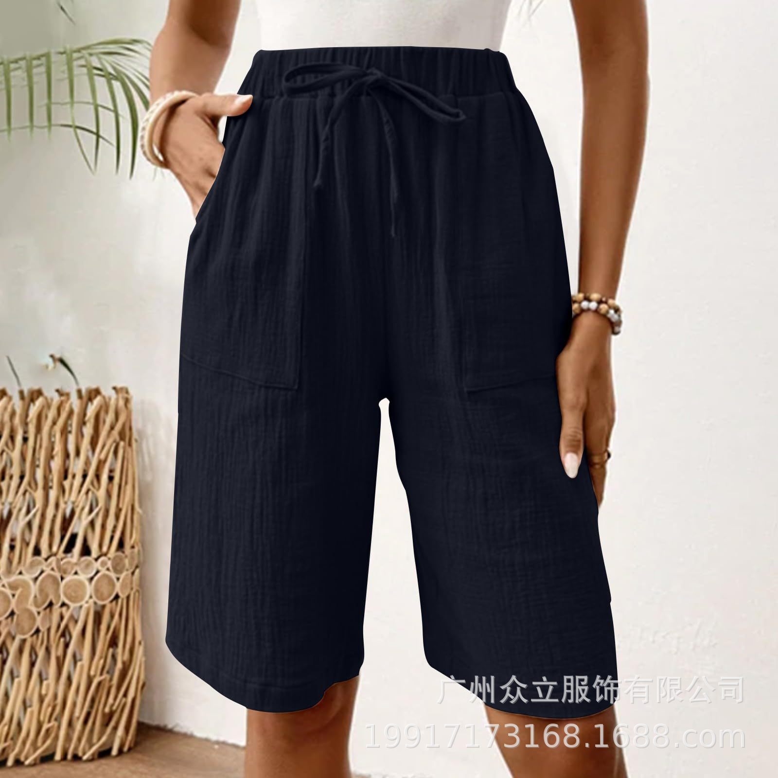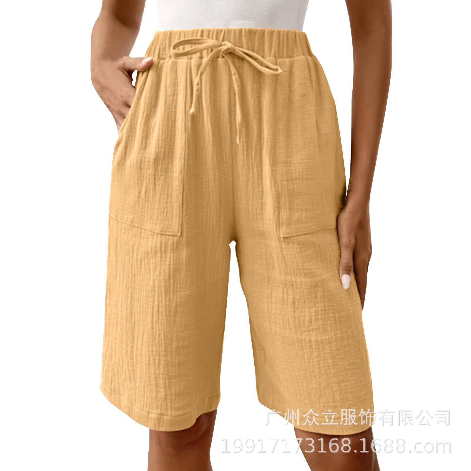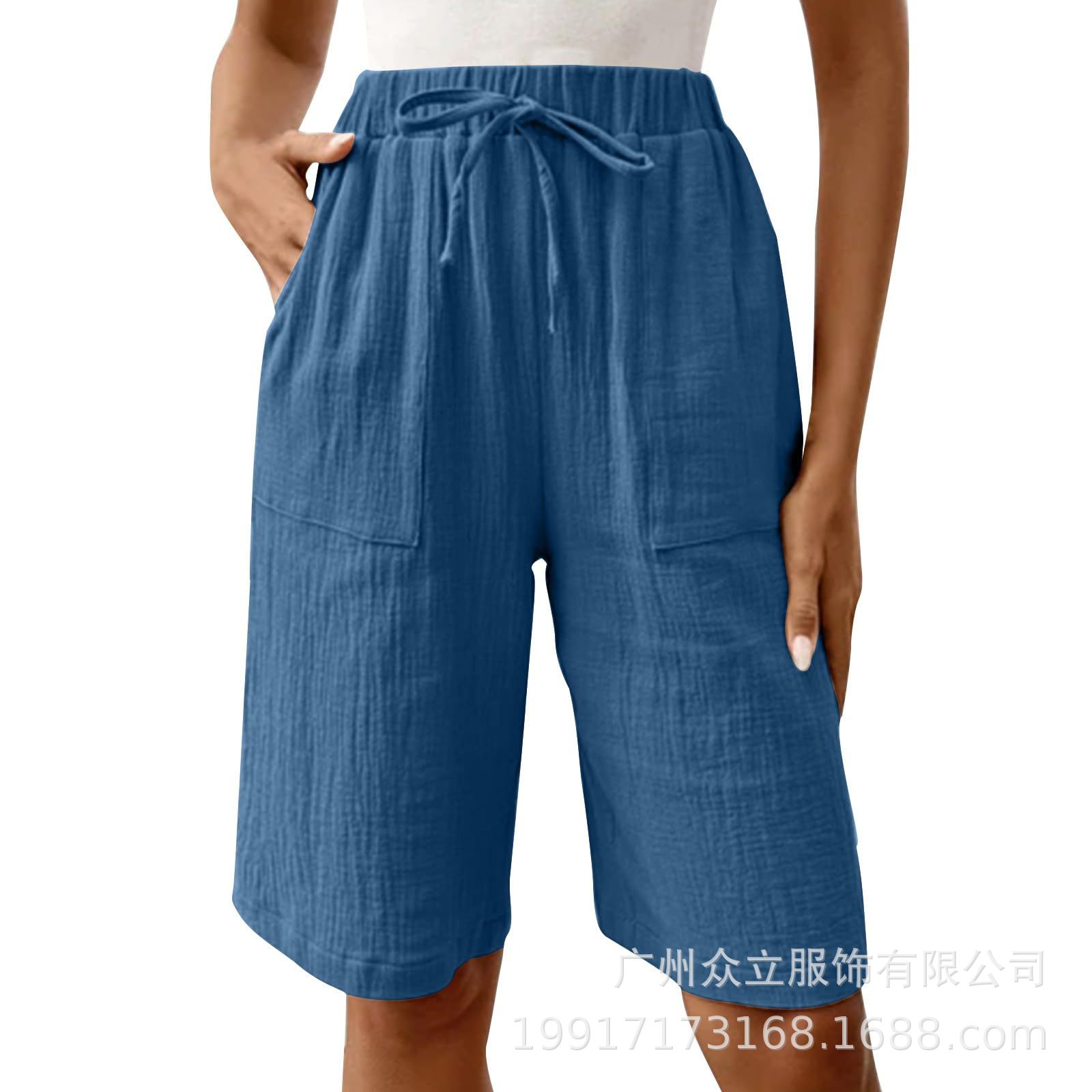 2025 유럽 및 미국 아마존 독립 역 새로운 여성 여름 면화 및 리넨 솔리드 컬러 스트랩 느슨한 캐주얼 반바지스토어 가기