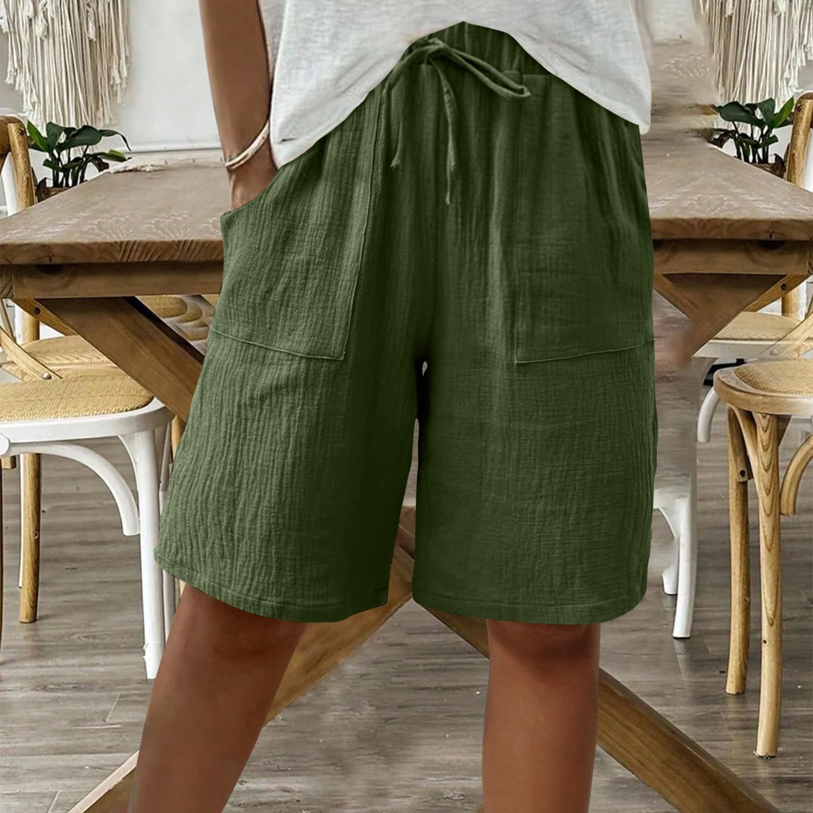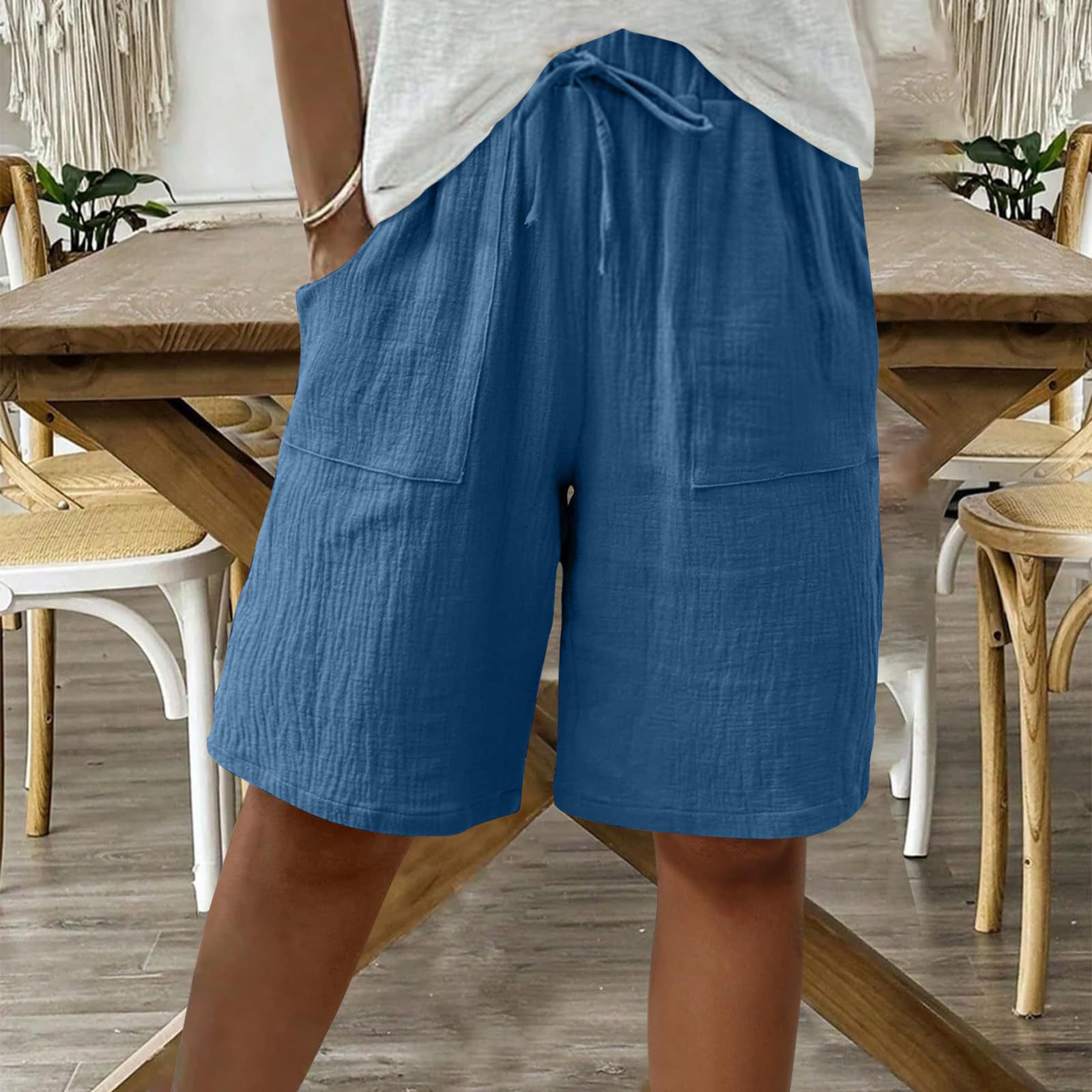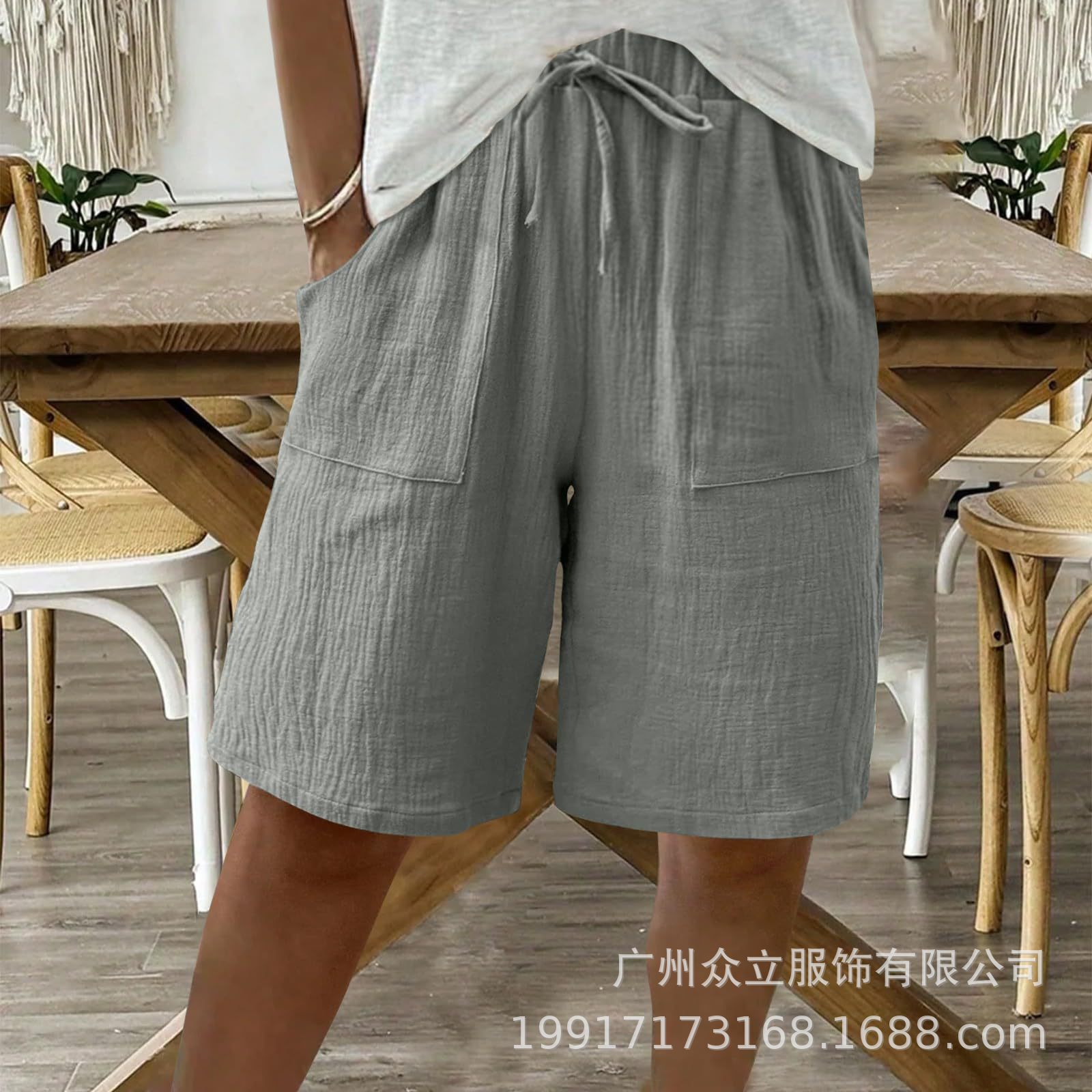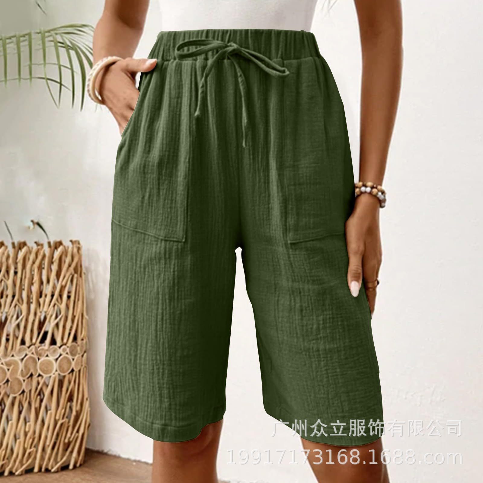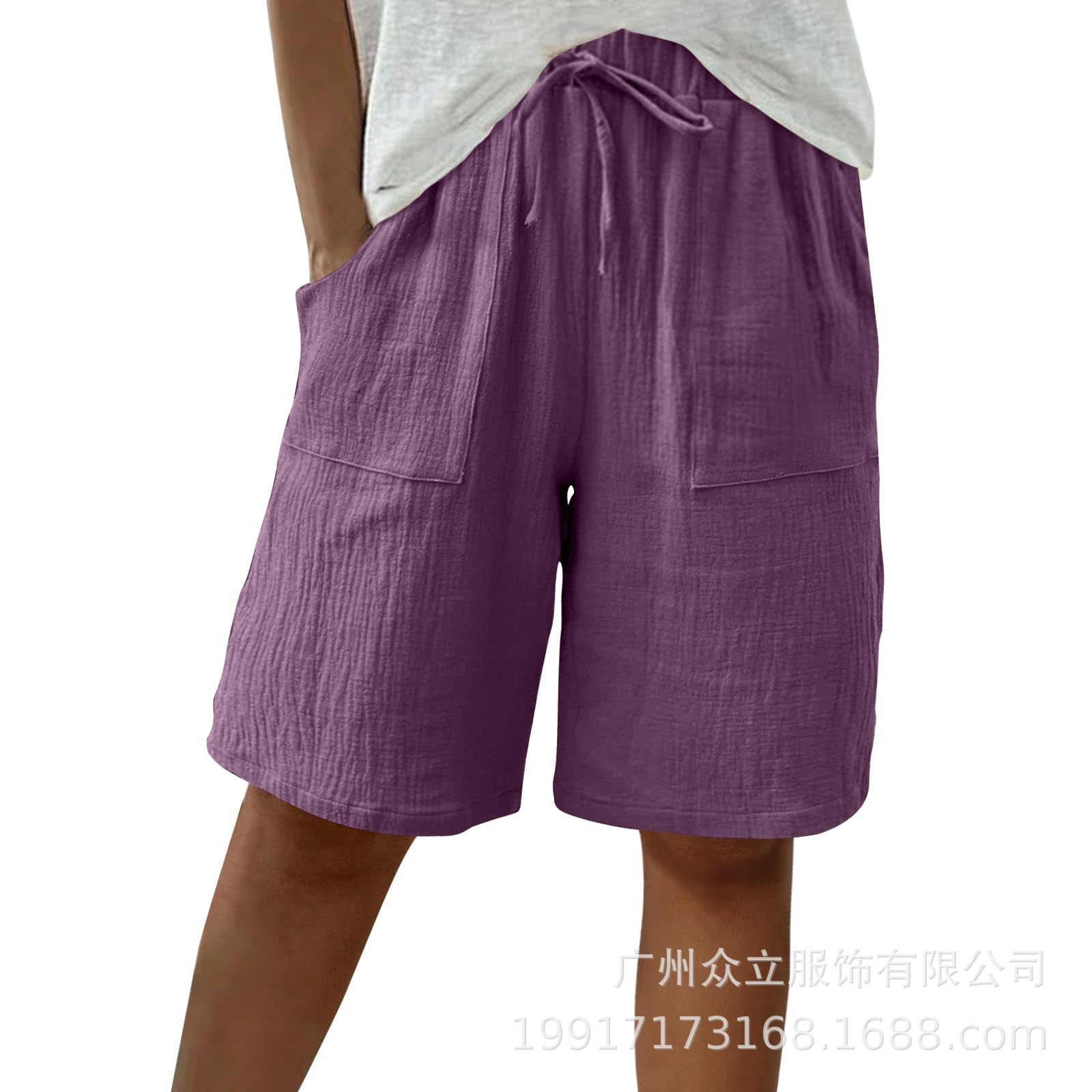 2025 유럽 및 미국 아마존 독립 역 새로운 여성 여름 면화 및 리넨 솔리드 컬러 스트랩 느슨한 캐주얼 반바지스토어 가기