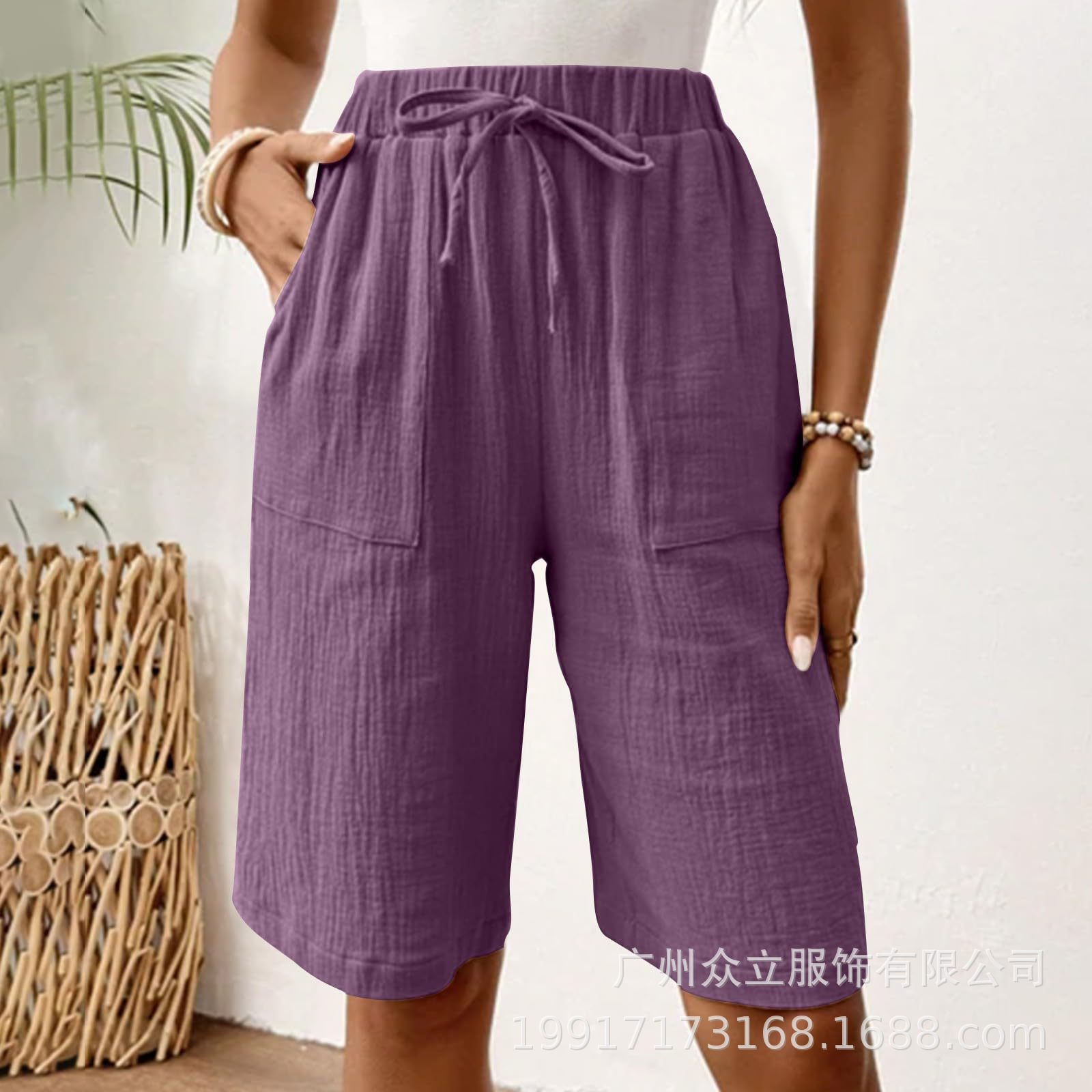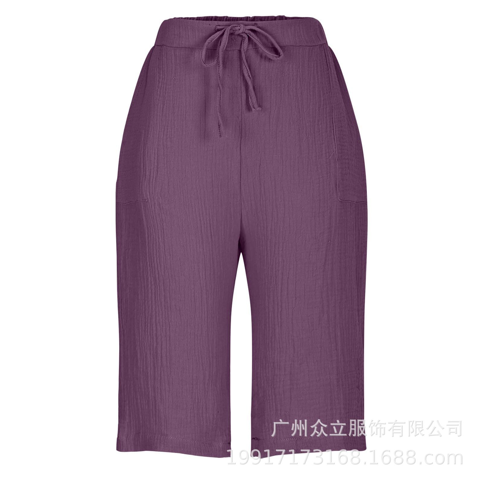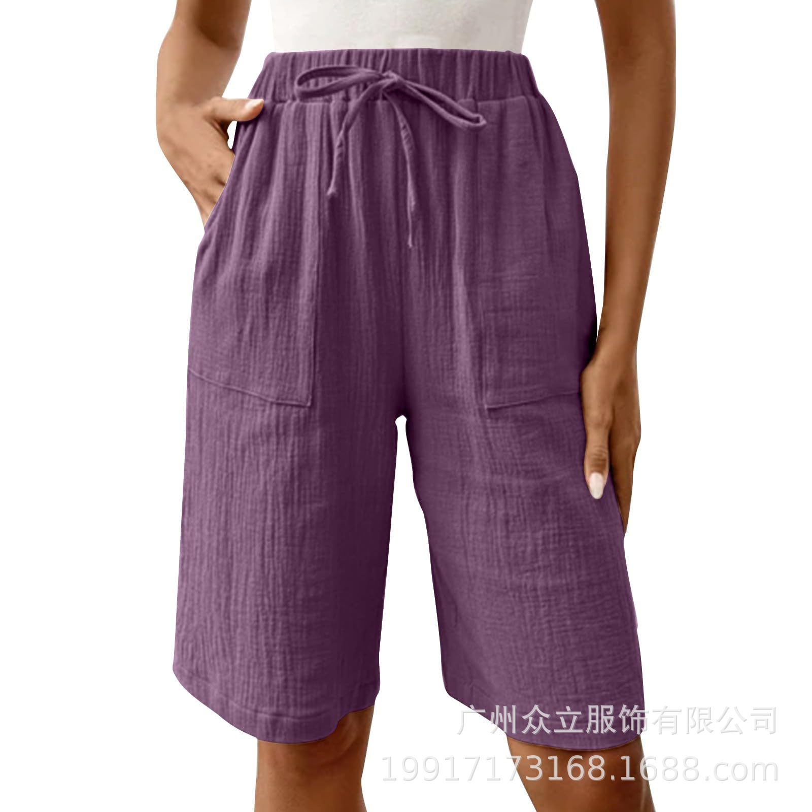 2025 유럽 및 미국 아마존 독립 역 새로운 여성 여름 면화 및 리넨 솔리드 컬러 스트랩 느슨한 캐주얼 반바지