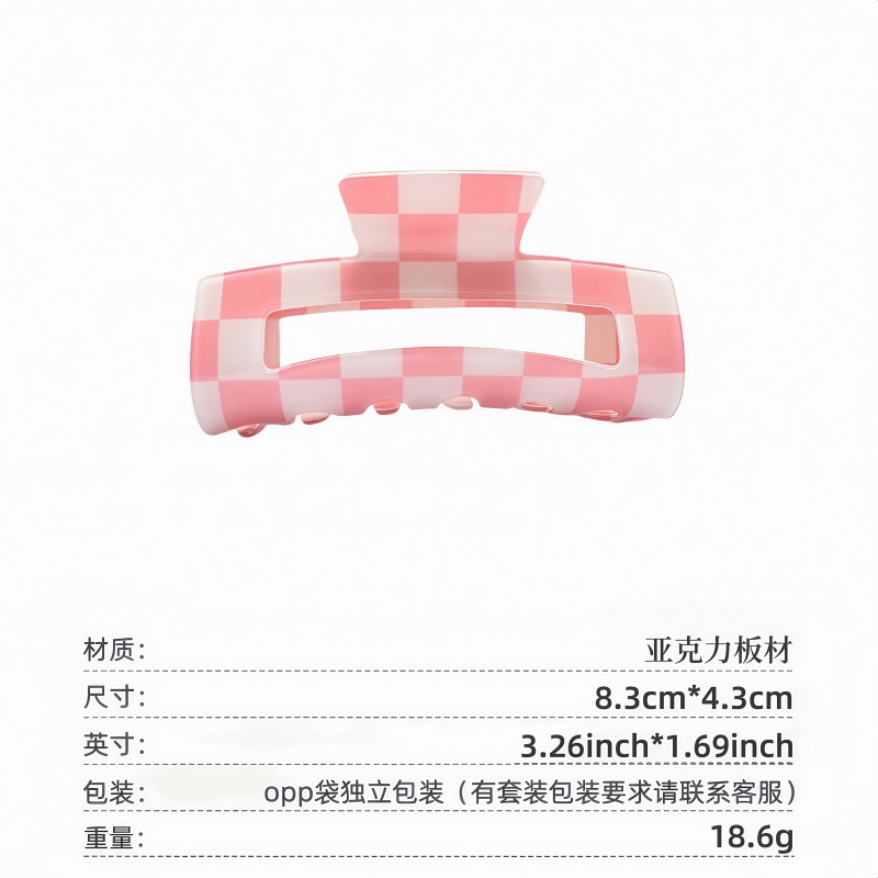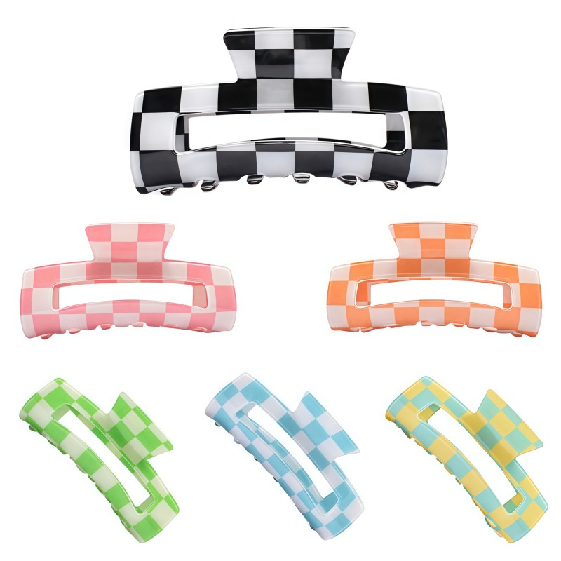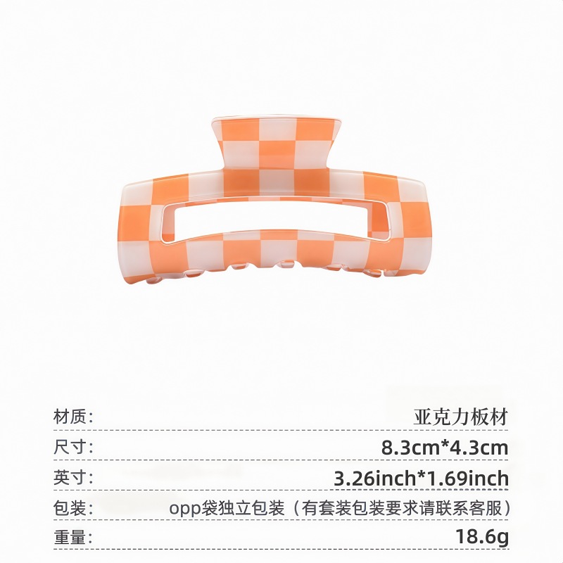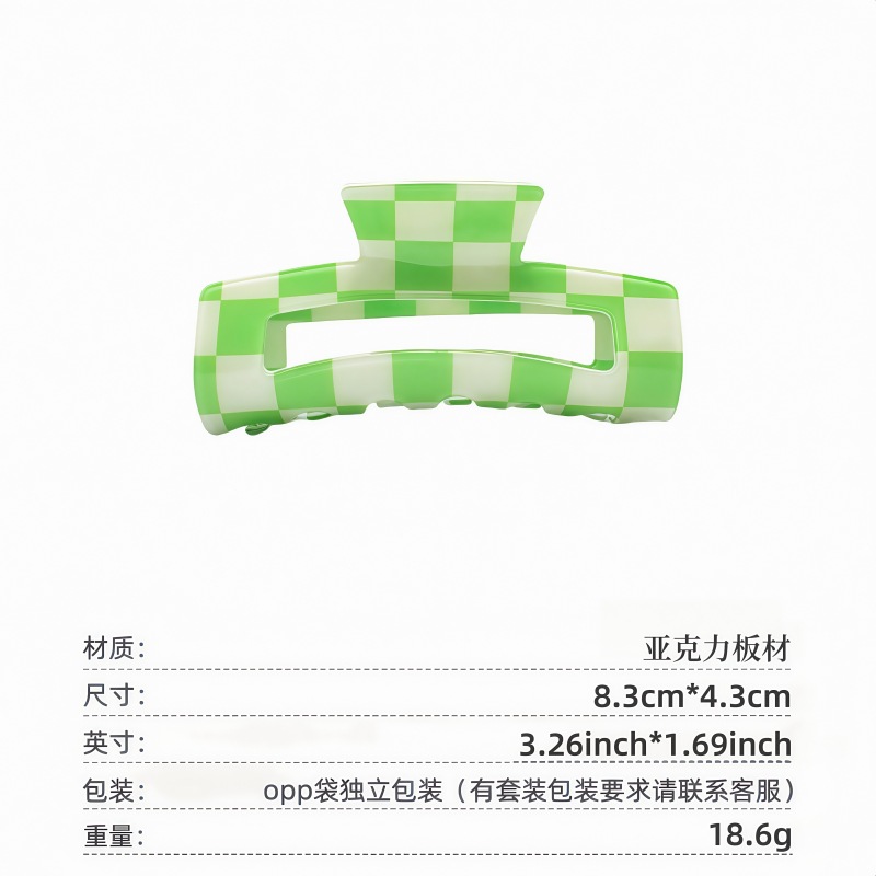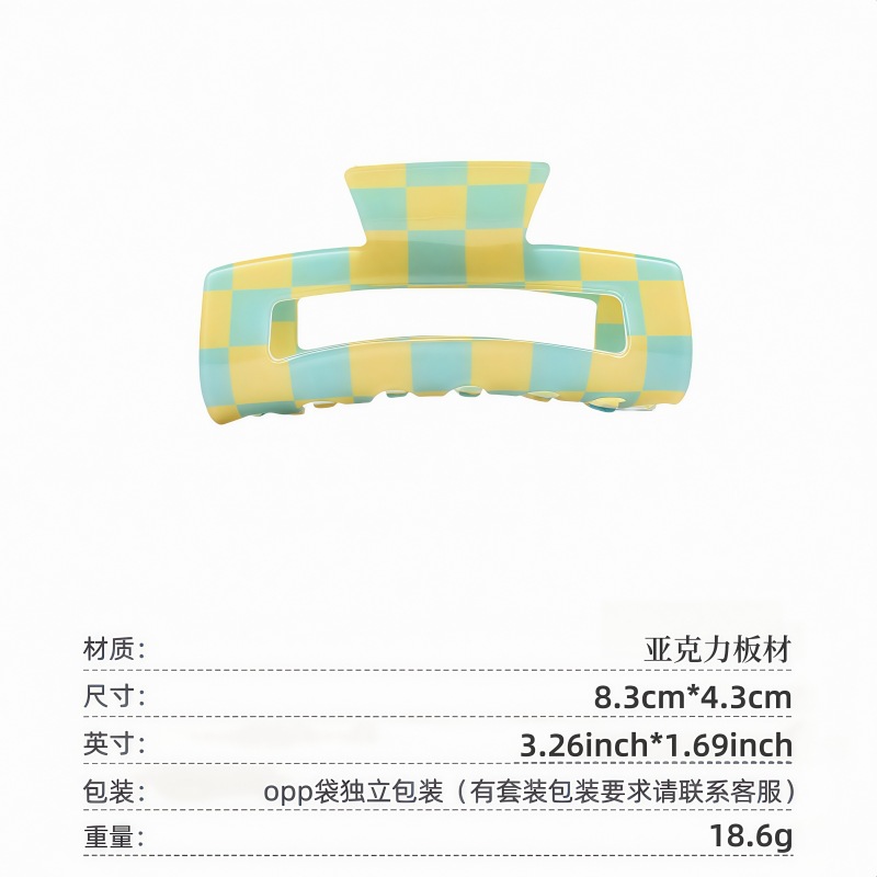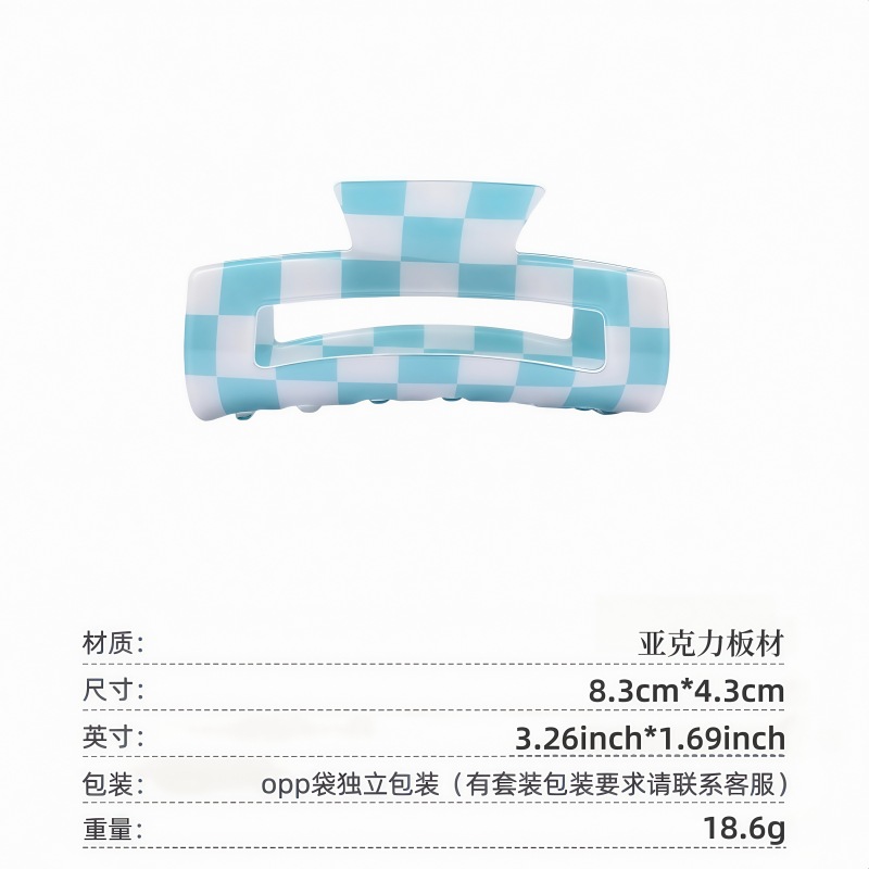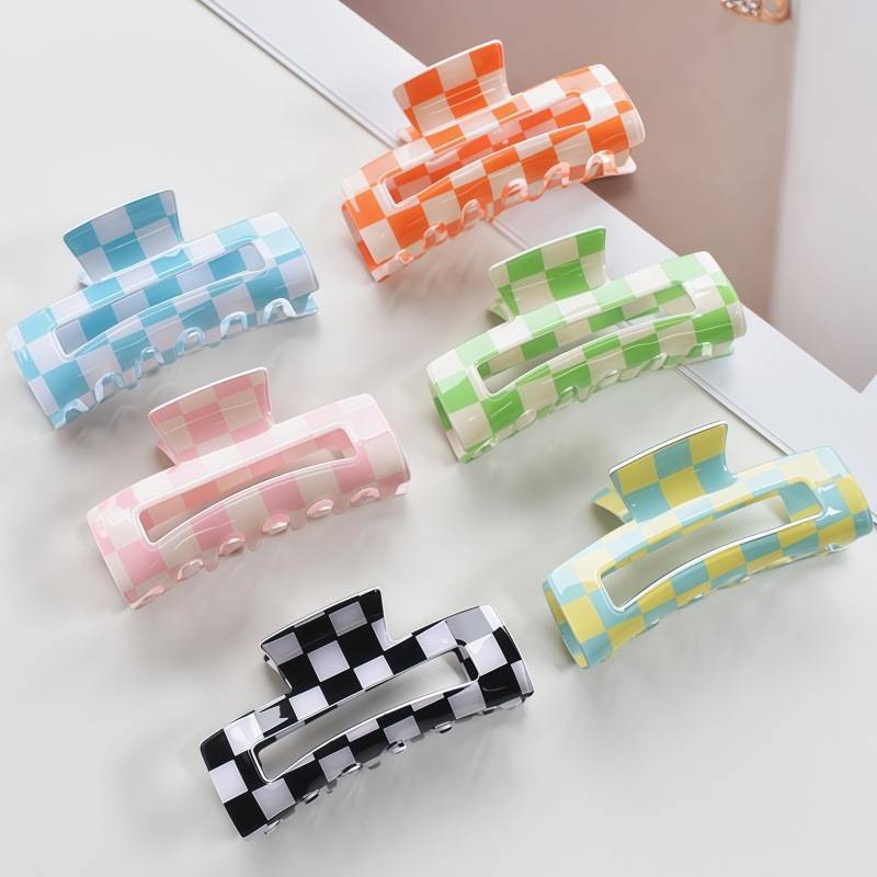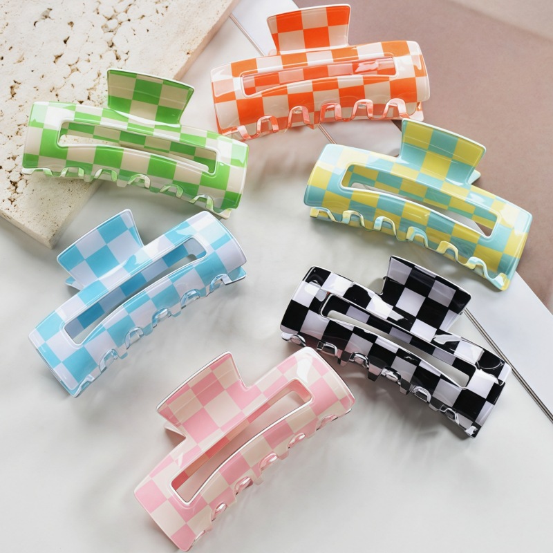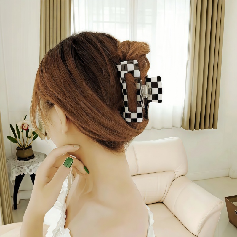 국경 간 Ins 우아한 게으른 스타일 프랑스 빈티지 아크릴 중형 체스보드 잡아 클립 헤어핀 간단한 페이테일 클립