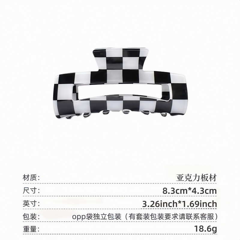 국경 간 Ins 우아한 게으른 스타일 프랑스 빈티지 아크릴 중형 체스보드 잡아 클립 헤어핀 간단한 페이테일 클립스토어 가기