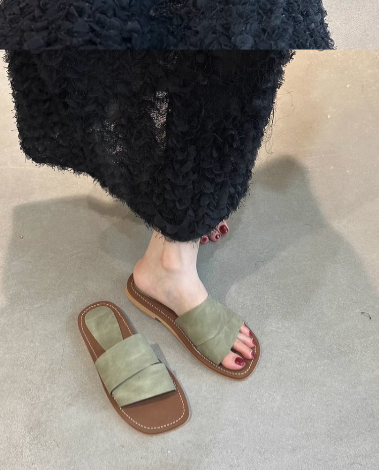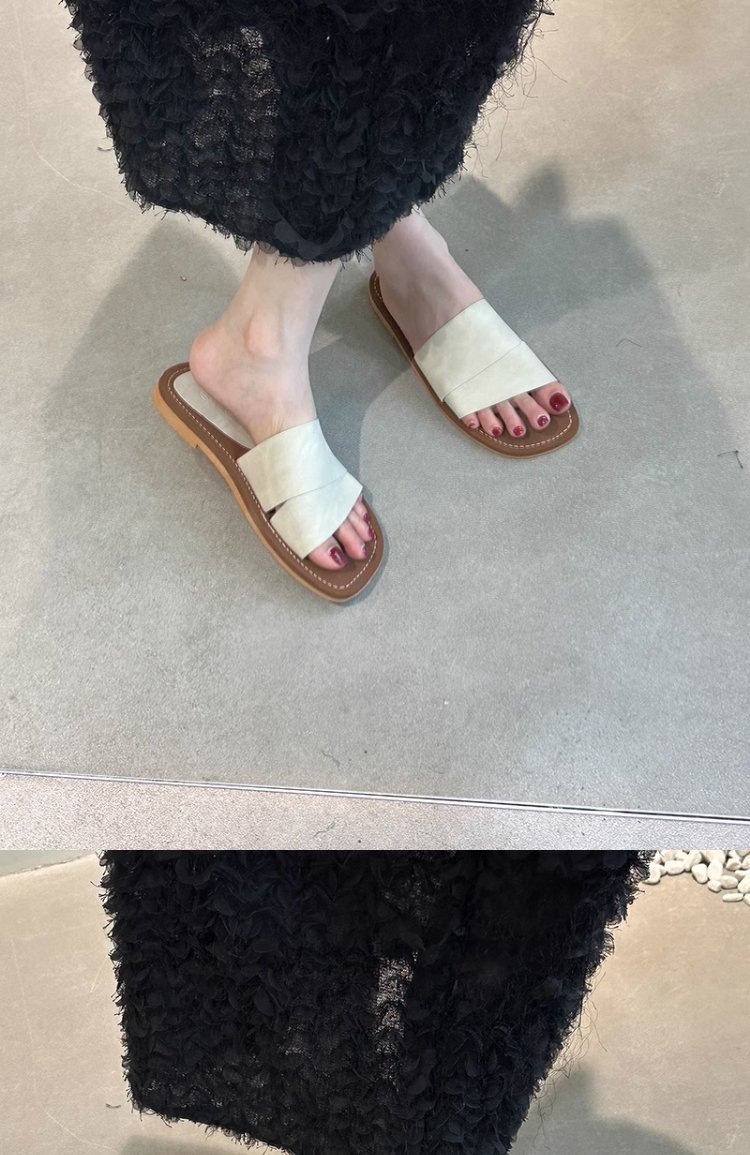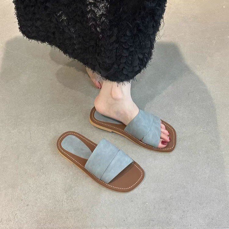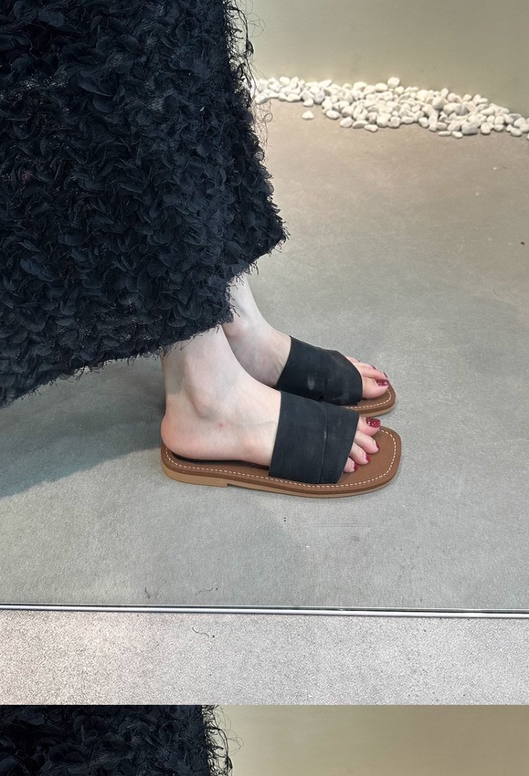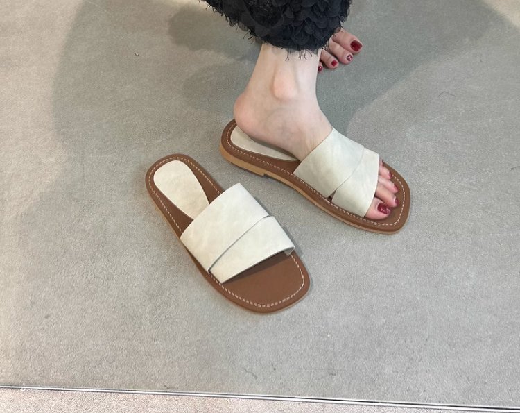 틈새 디자인 레트로 플랫 슬리퍼 여성 여름 아우터 2025 새로운 요정 스타일 해변 샌들