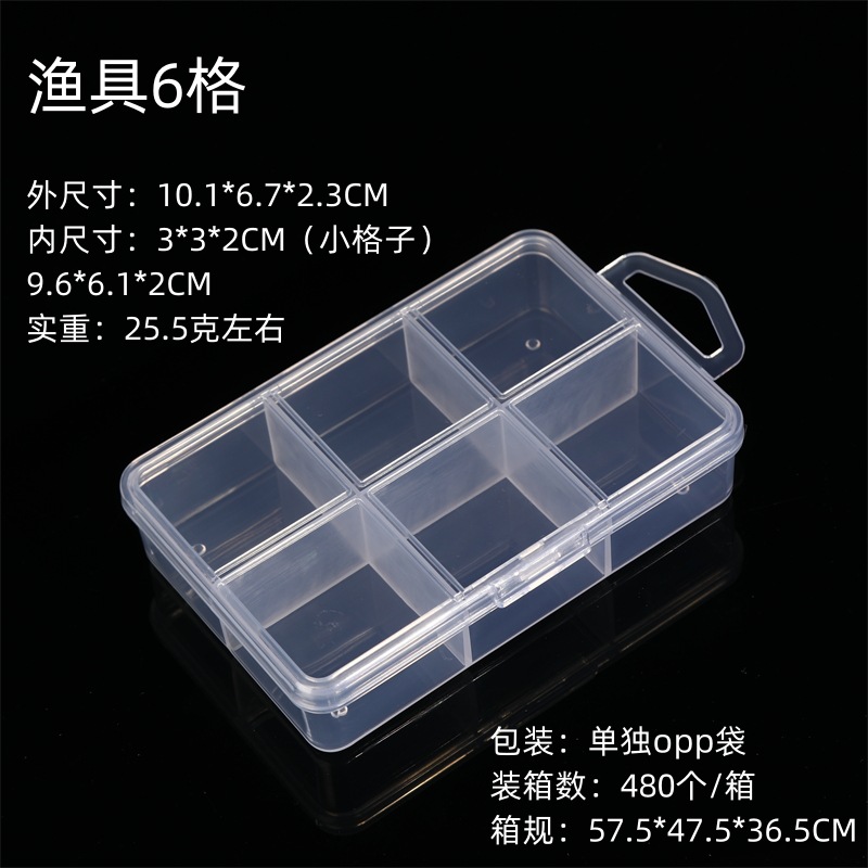 6 그리드 투명 PP 플라스틱 상자 DIY 보석 화장품 네일 보관 상자 구슬 하드웨어 낚시 기어 가짜 미끼 마무리 상자스토어 가기