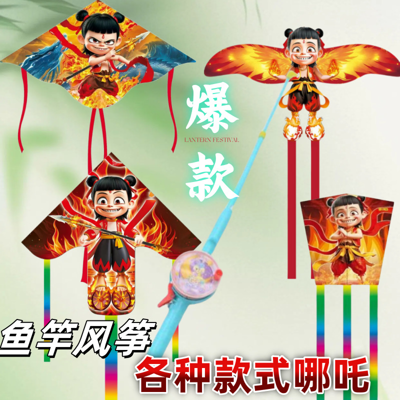 새로운 봄 낚싯대 Nezha 2 악마 소년 바다 연 새 어린이 도매 플라스틱 스톨 전통 장난감스토어 가기