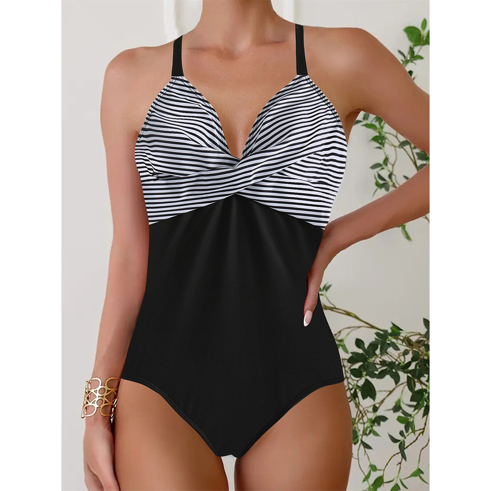2025 새로운 국경 유럽과 미국의 섹시 플러스 사이즈 모입니다. 흰색 줄무늬 패션 원피스 비키니 수영복 여성스토어 가기