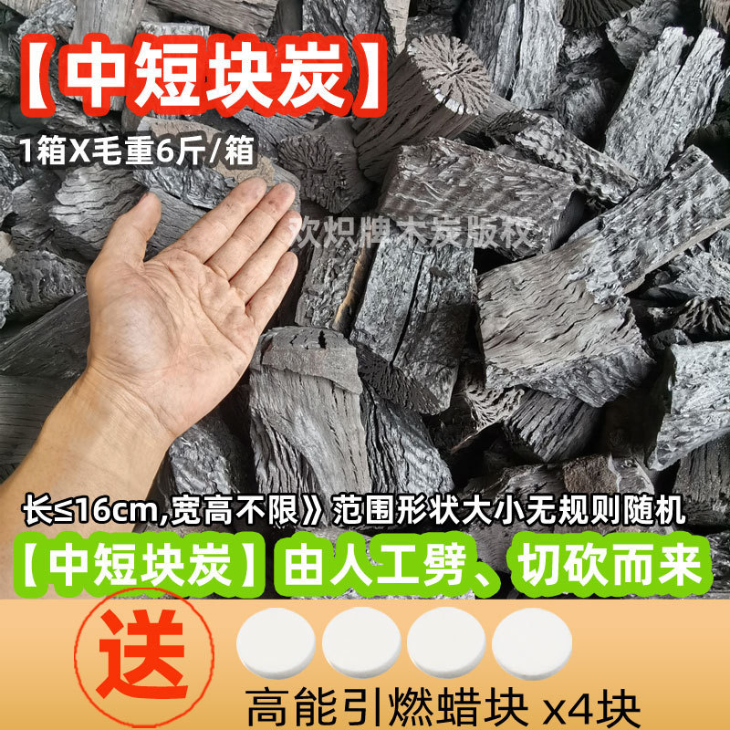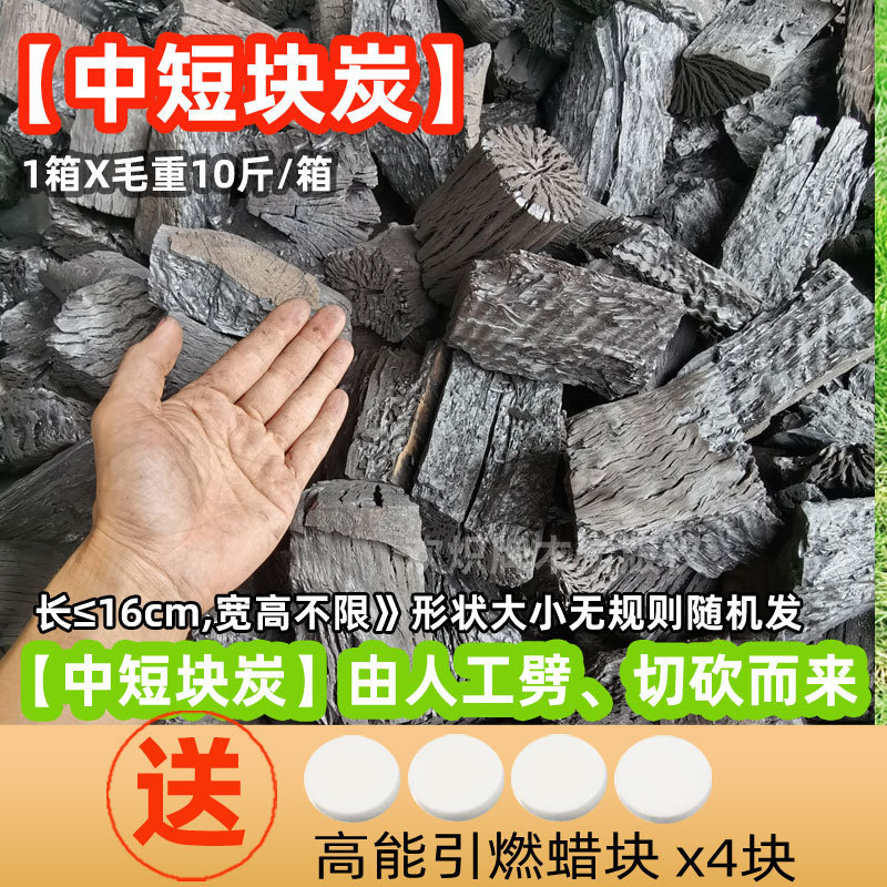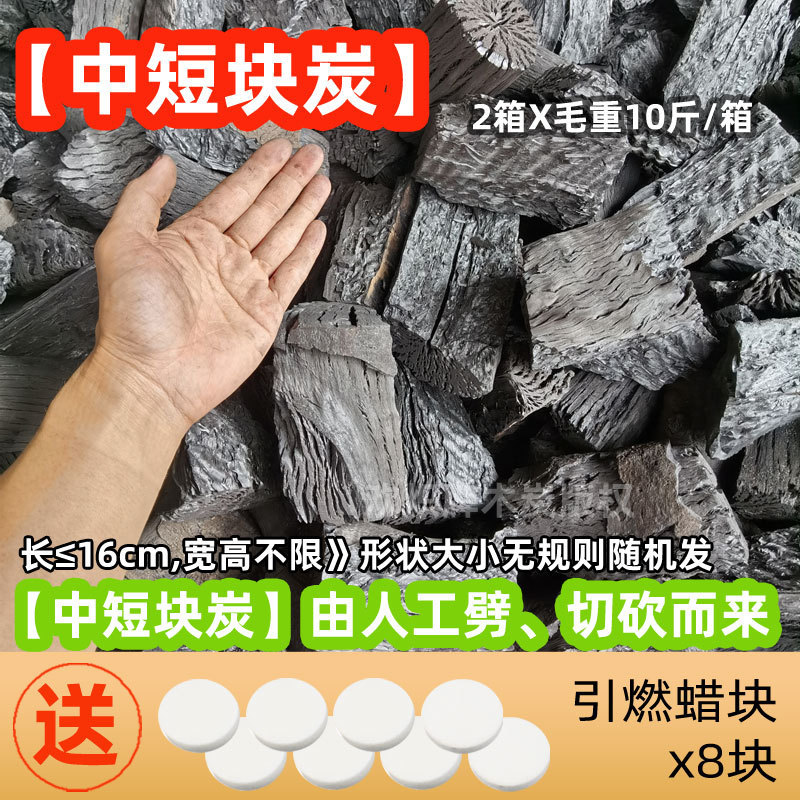 • 리치 숯 중간 및 짧은 블록 10kg 총 중량 - 90% 균열, 무료 8 점화 왁스 블록