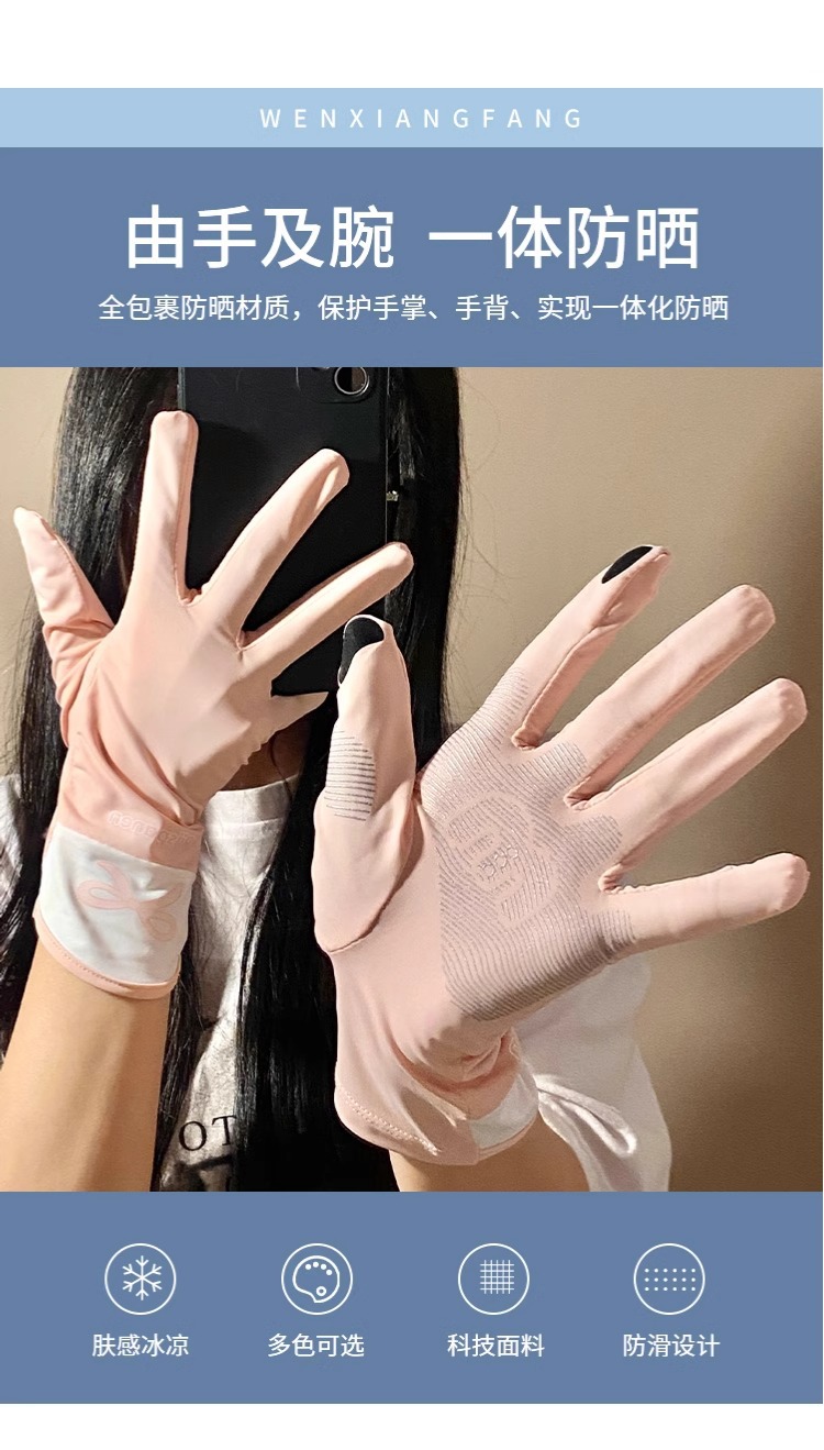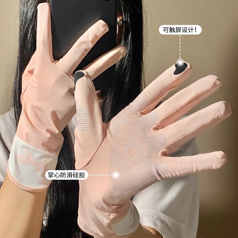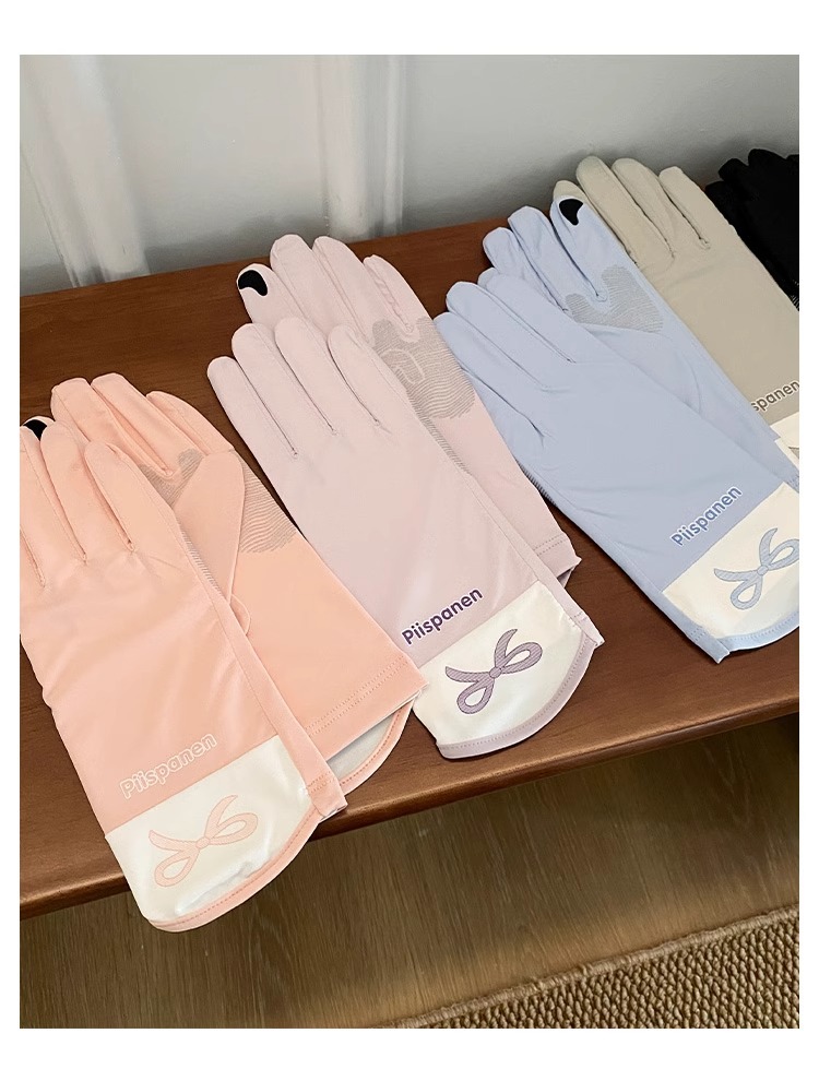 귀여운 활 인쇄 핑크 태양 보호 장갑 여성의 2025 봄 새로운 야외 안티 UV 아이스 실크 터치 스크린