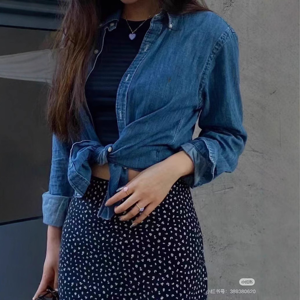 RL25 새로운 도착 Zheng Xiujing 같은 스타일 올 매치 클래식 미국 스타일 작은 표준 스왑 세탁 여성용 데님 셔츠