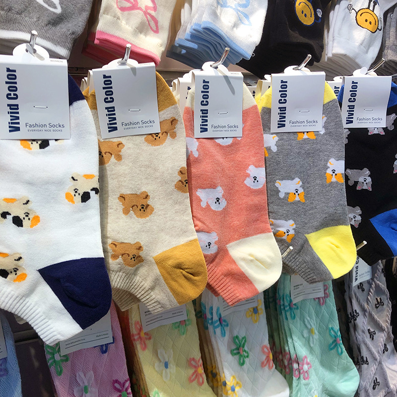 25 한국 생체 컬러 봄과 여름 새로운 양말 사랑스러운 만화 개 여자 양말 컬러 매칭 낮은 허리 짧은 튜브스토어 가기