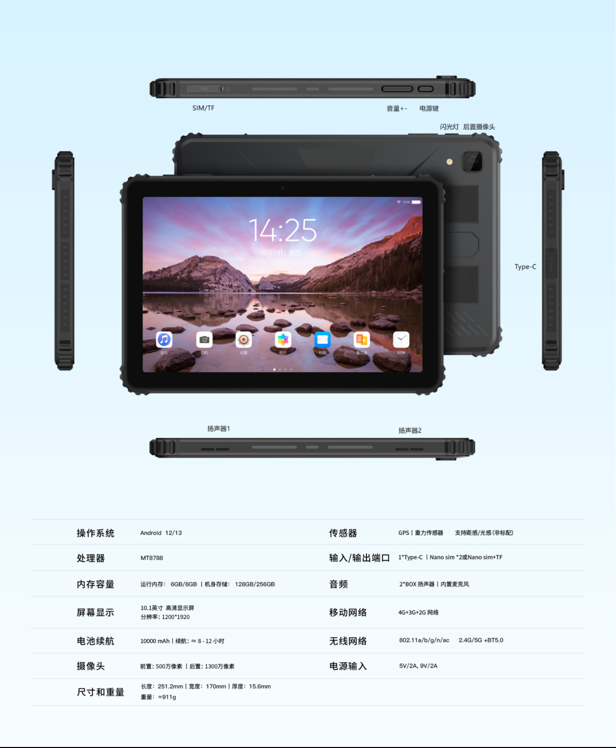 10 인치 경량 강화 3 방제 태블릿 하이라이트 GPS 긴 내구성 방수 방진 방진 야외 태블릿 PC