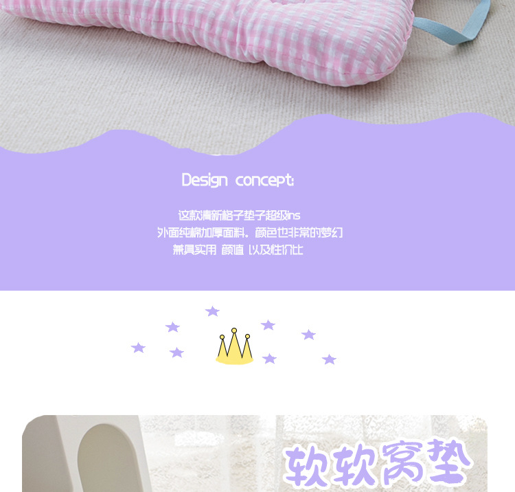 • 블루 체크 무늬 매트 + (베개 색상 랜덤)