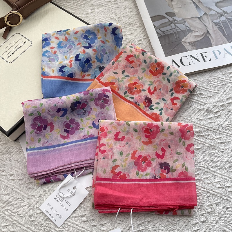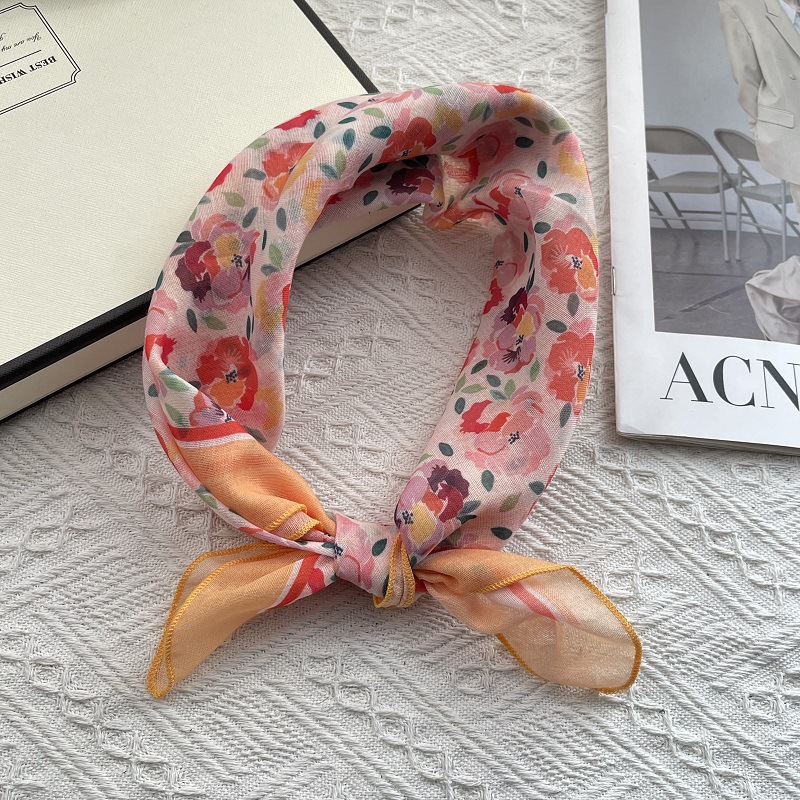 봄 신선한 작은 꽃 예술 숲 예술 레트로 올매치 코튼 앤 리넨 작은 스퀘어 스카프 작은 스카프 인 헤어 밴드