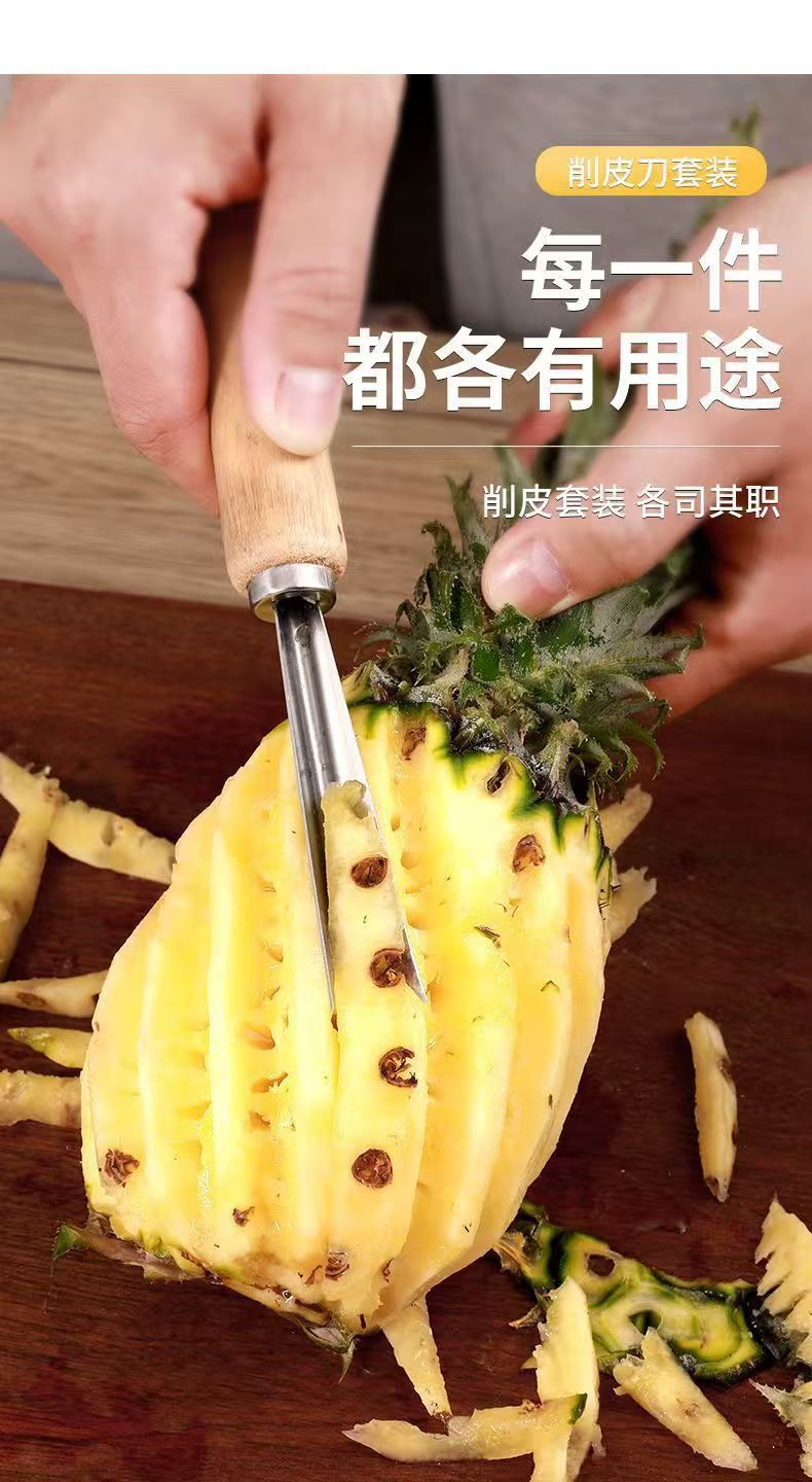스테인레스 스틸 파인애플 칼 사탕 수수 칼 탄소 강철 두꺼운 가정용 필러 칼 4 피스 세트 껍질 스크레이퍼 아이 커터스토어 가기