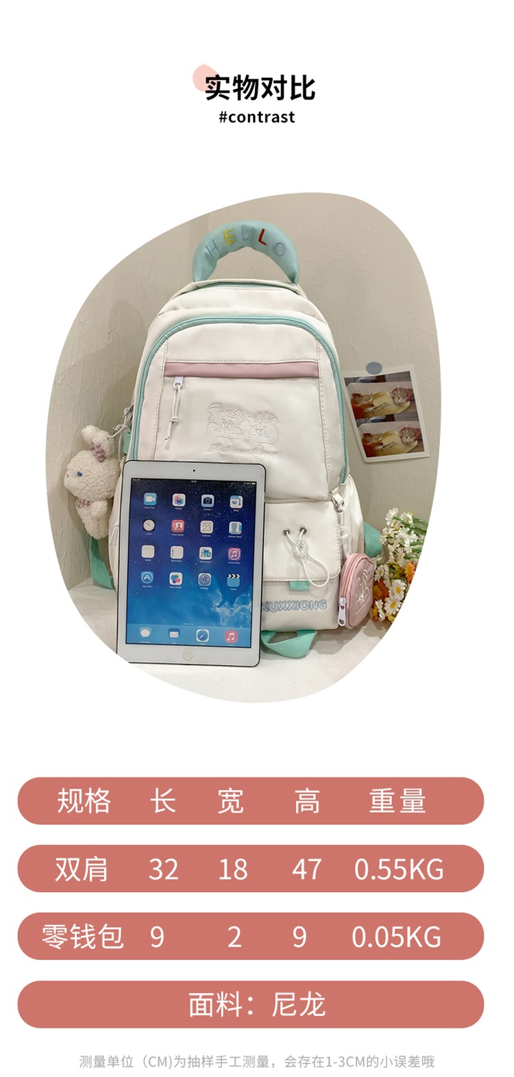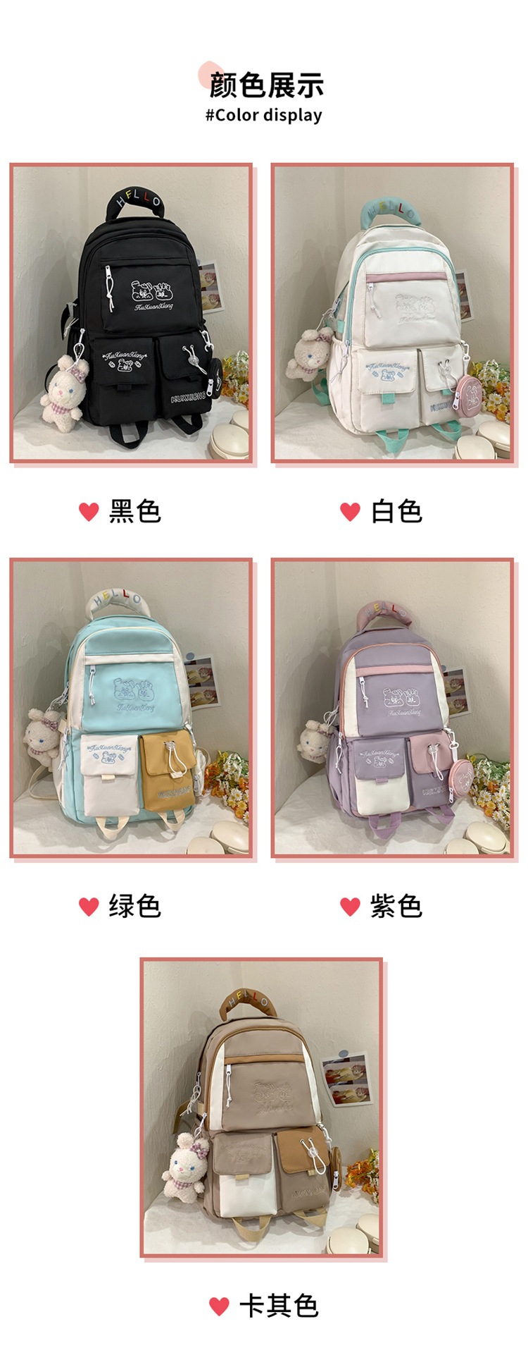 일본인대학 스타일 스쿨백 여성 올매치 컬러 대비 대용량 백팩 중학생 여중학생 백팩