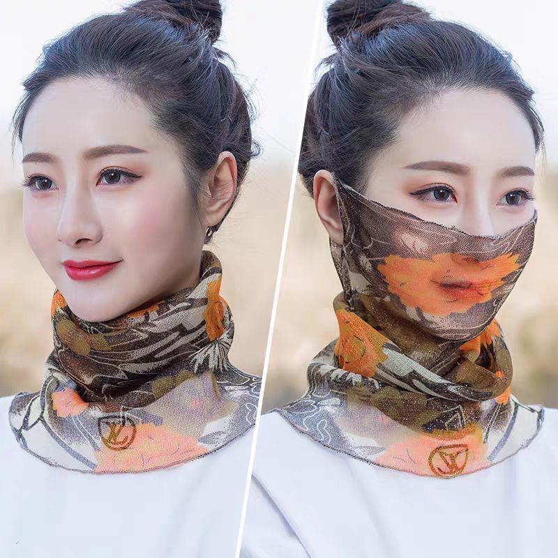 골드 실크 교수형 귀 스카프 여성 봄과 여름 올 매치 선 스크린 목 소매 다기능 목 보호 베일 커버 가변 터틀릿 작은 실크 스카프