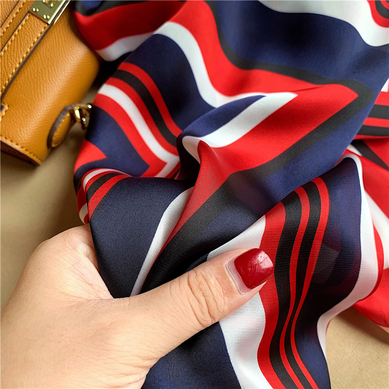 여성용 실크 스카프, 한국식 가을 겨울 얇은 컬러풀 스트라이프, 다재다능하고 우아한 전문 승무원 스카프