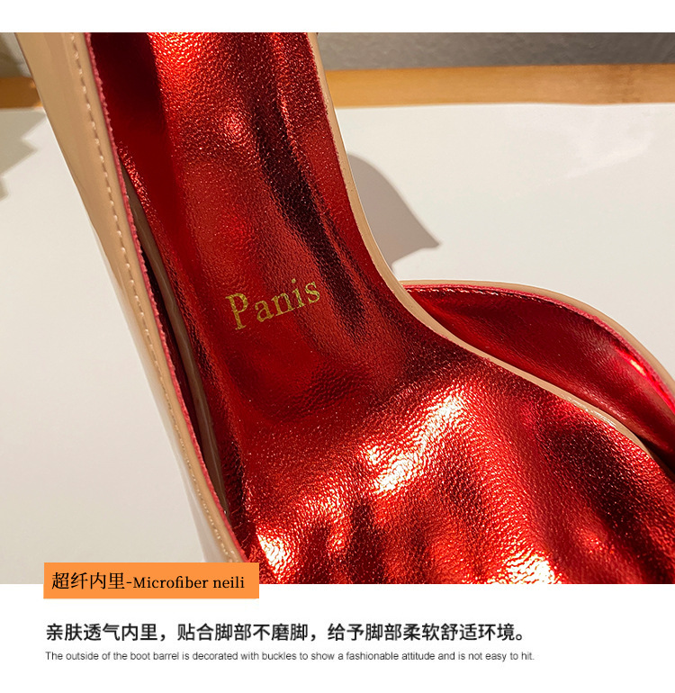 블랙 하이힐 여성 스틸레토 2025 새로운 레드 솔 신발 뾰족한 머리 라인석 얕은 입 특허 가죽 전문 사이드 빈 싱글 신발