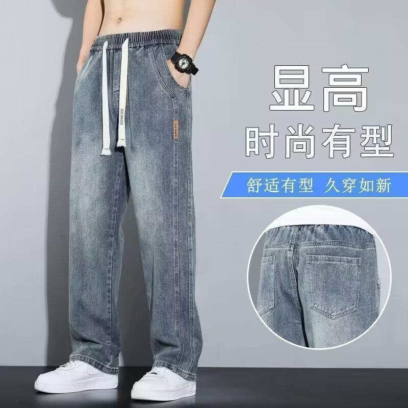 청바지 남성 2025 봄과 가을 스트레이트 느슨한 플러스 사이즈 패션 브랜드 와이드 레그 아메리칸 스타일 하이 스트리트 학생 캐주얼 롱 바지스토어 가기