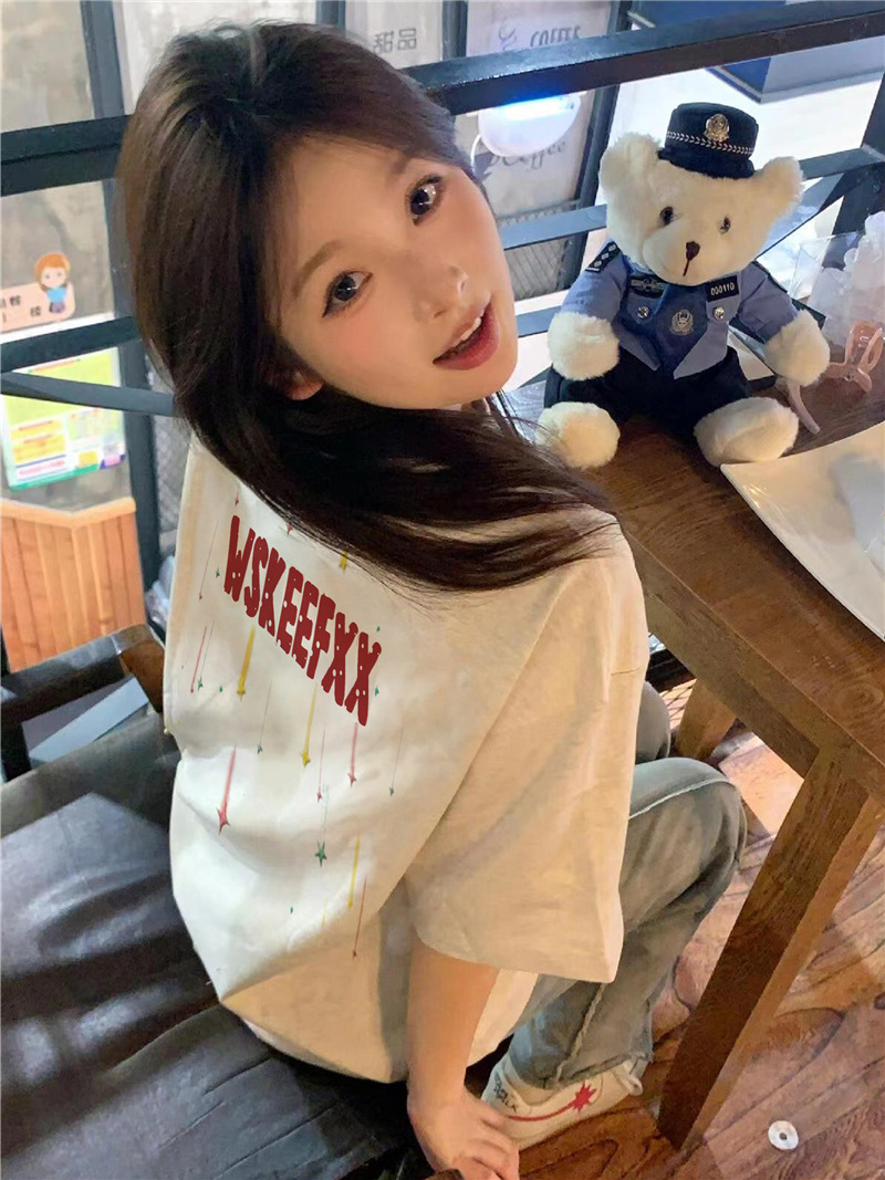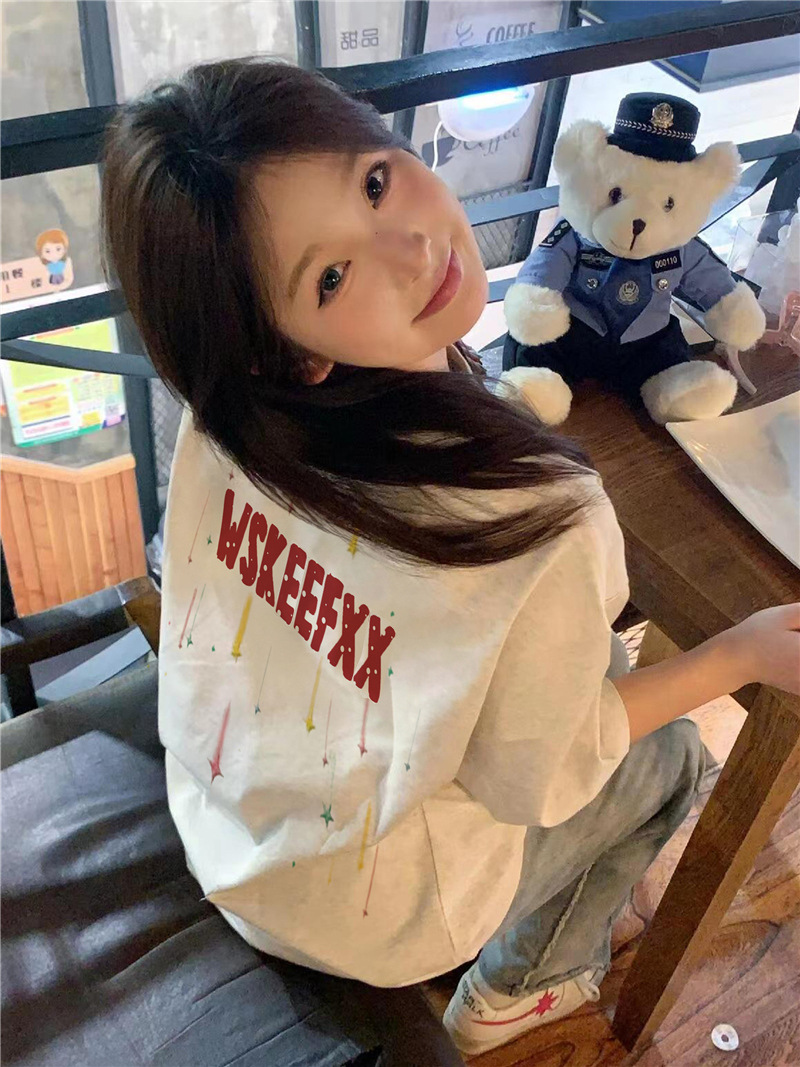 새로운 아메리칸 스타일 레트로 퓨어 코튼 중량형 반팔 티셔츠 여성 디자인 센스 인스 타 그램 전국 패션 브랜드 틈새 반팔 탑스토어 가기