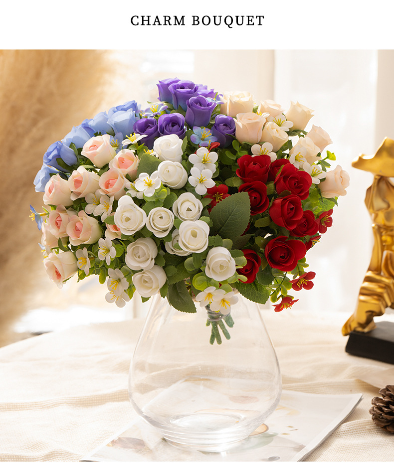 유럽식 꽃 느낌 장미 꽃다발 결혼식 꽃 인공 꽃 식물 홈 장식 가짜 꽃 장식품