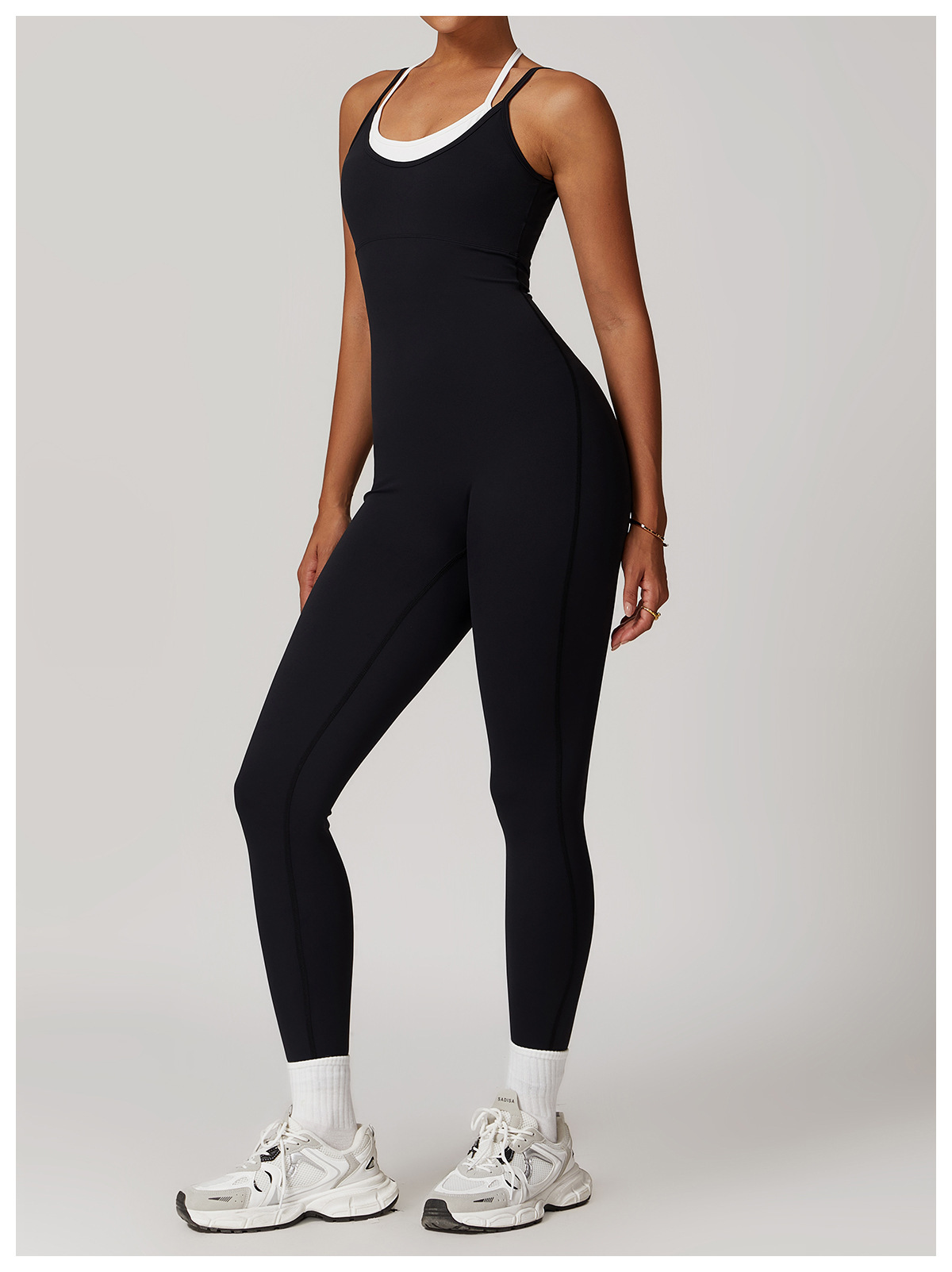 유럽과 미국의 가짜 투피스 컬러 슬링 스포츠 원피스 요가 옷 백리스 야외 피트니스 원피스 세트 스포츠