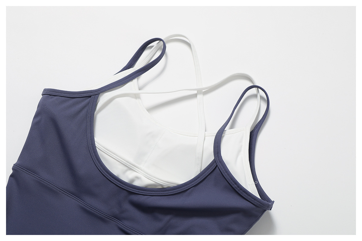 유럽과 미국의 가짜 투피스 컬러 슬링 스포츠 원피스 요가 옷 백리스 야외 피트니스 원피스 세트 스포츠스토어 가기