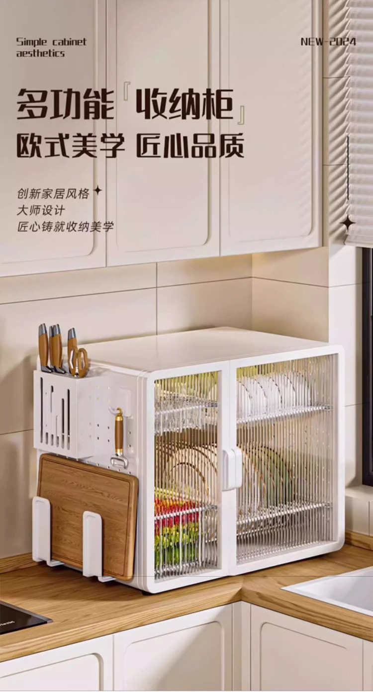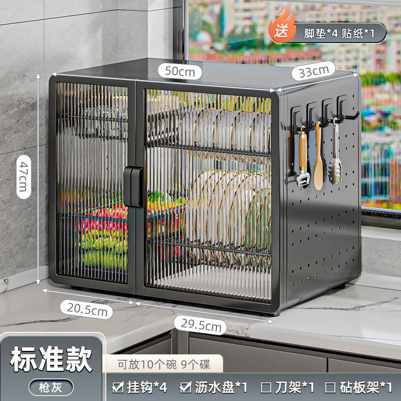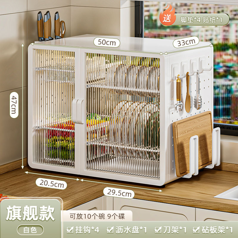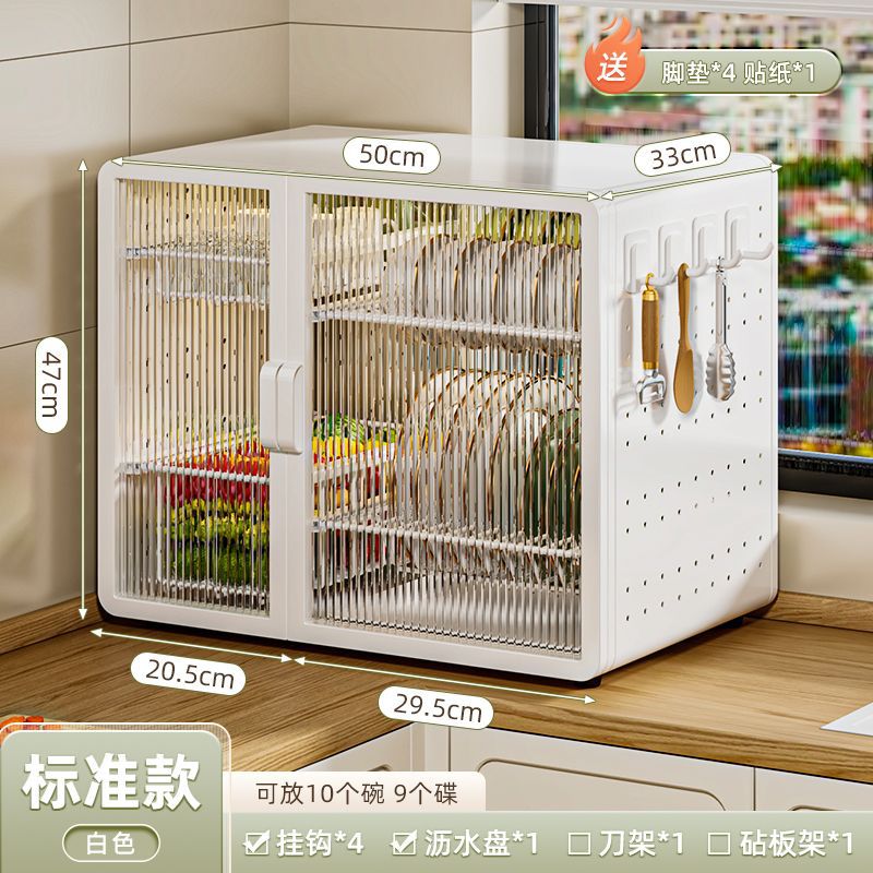 접시 저장 랙 주방 가정용 식기 이중 층 배수 먼지 방지 저장 상자 다기능 저장 랙 찬장
