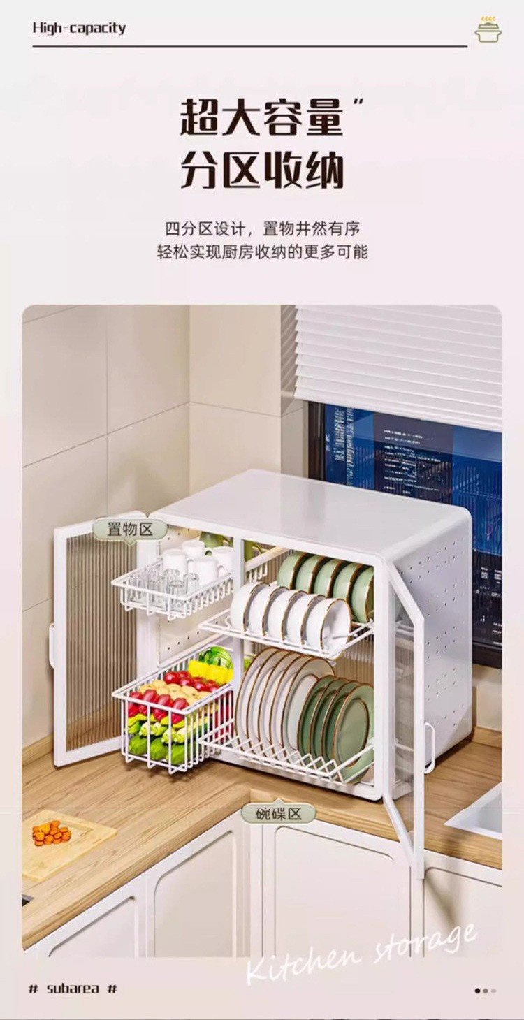 접시 저장 랙 주방 가정용 식기 이중 층 배수 먼지 방지 저장 상자 다기능 저장 랙 찬장스토어 가기