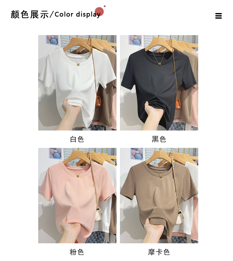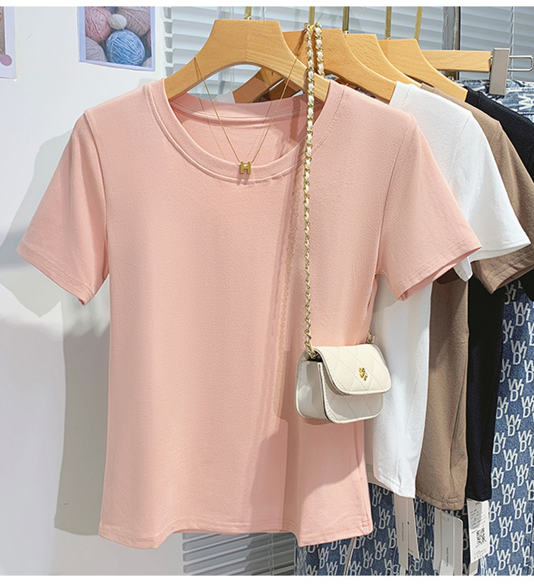 솔리드 컬러 얇은 어깨 반팔 티셔츠 여자 여름 2025 새로운 낮은 U 칼라 쇄골 반소매 한국식 올매치 탑스토어 가기