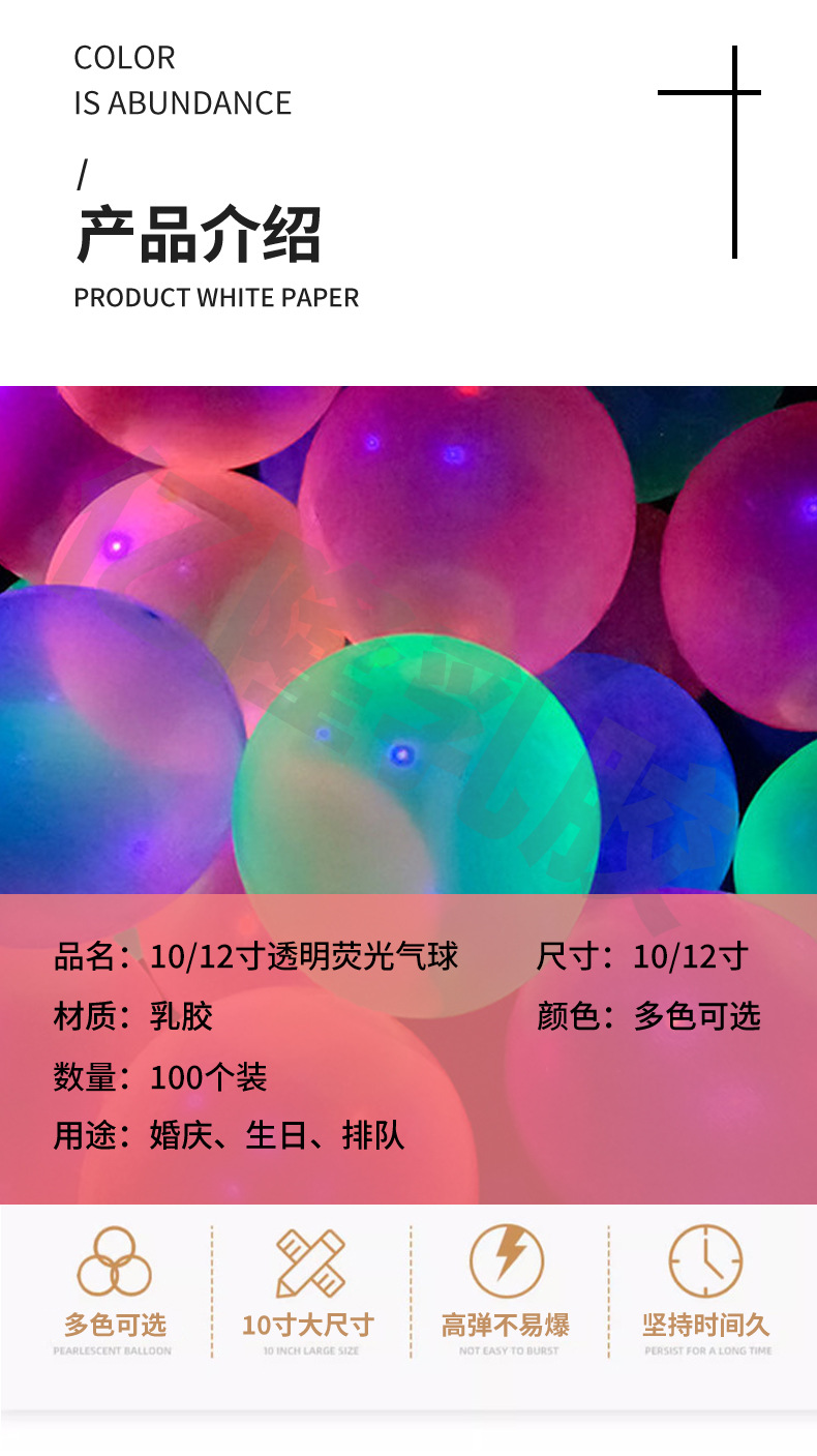 12inch 10inch 투명 형광 풍선 네온 무역 컬러 야광 풍선 생일 파티 장식 발광 풍선