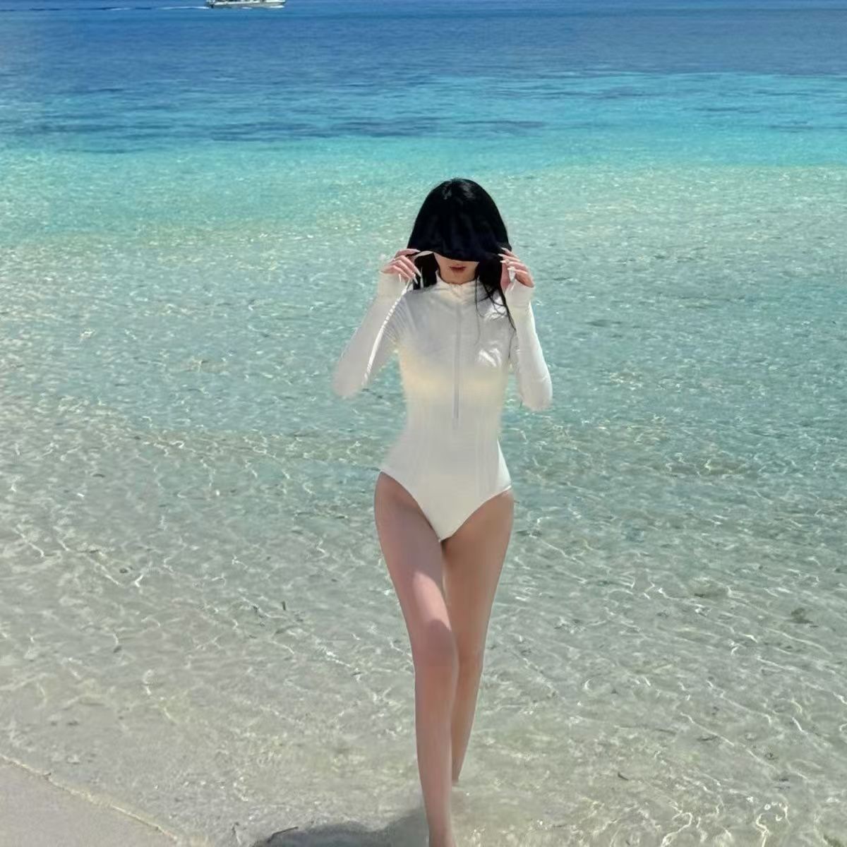 자외선 차단 원피스 수영복 삼각형 긴팔 다이빙 슈트 여성용 수영복 해파리 방지복 새로운 스타일의 보수적인 삼색 여성용 2025스토어 가기