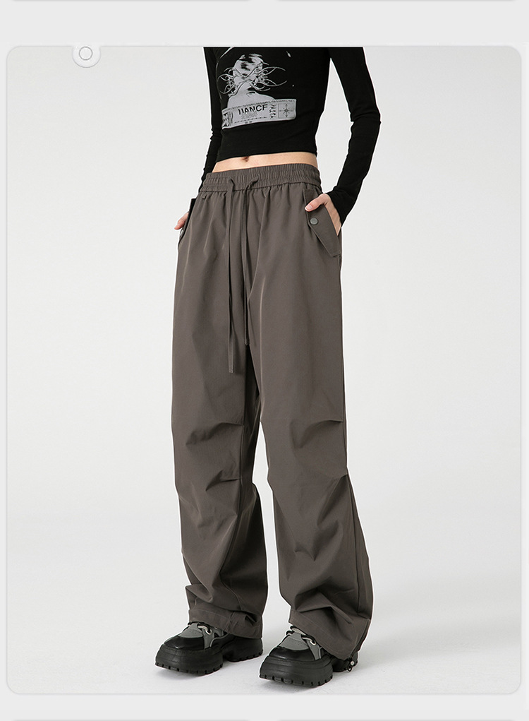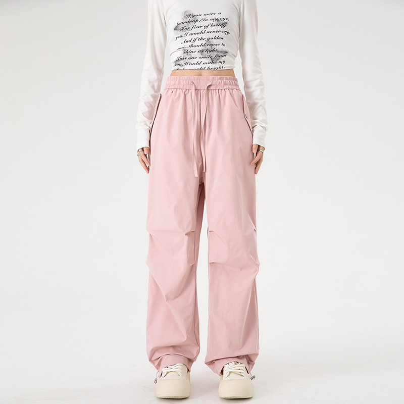 아메리칸 스타일 가볍고 얇은 낙하산 크레인 바지 남성용 얇은 청소년 스포츠 충전 바지 여성용 스트레이트 배럴 봄과 여름 캐주얼 와이드 레그 바지