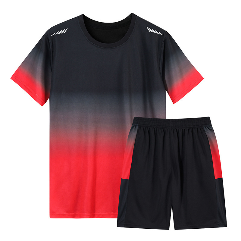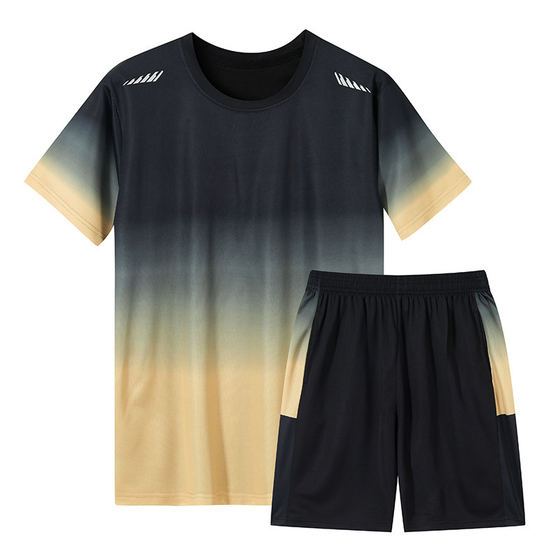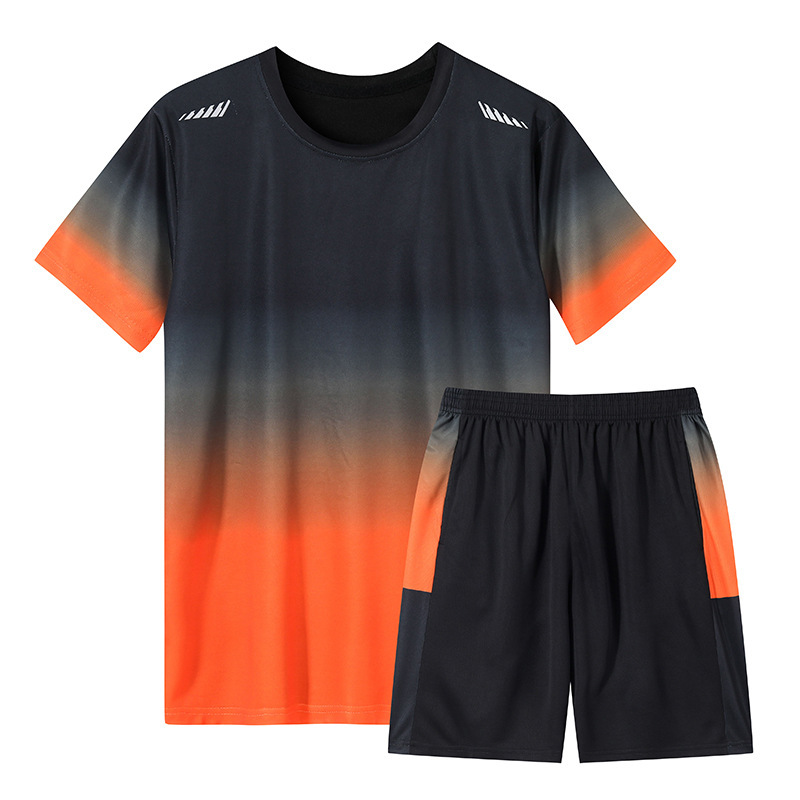 여름 그라디언트 커플 스포츠 세트 남자 캐주얼 여름 얇은 아이스 실크 남자의 빠른 건조 달리기 운동복