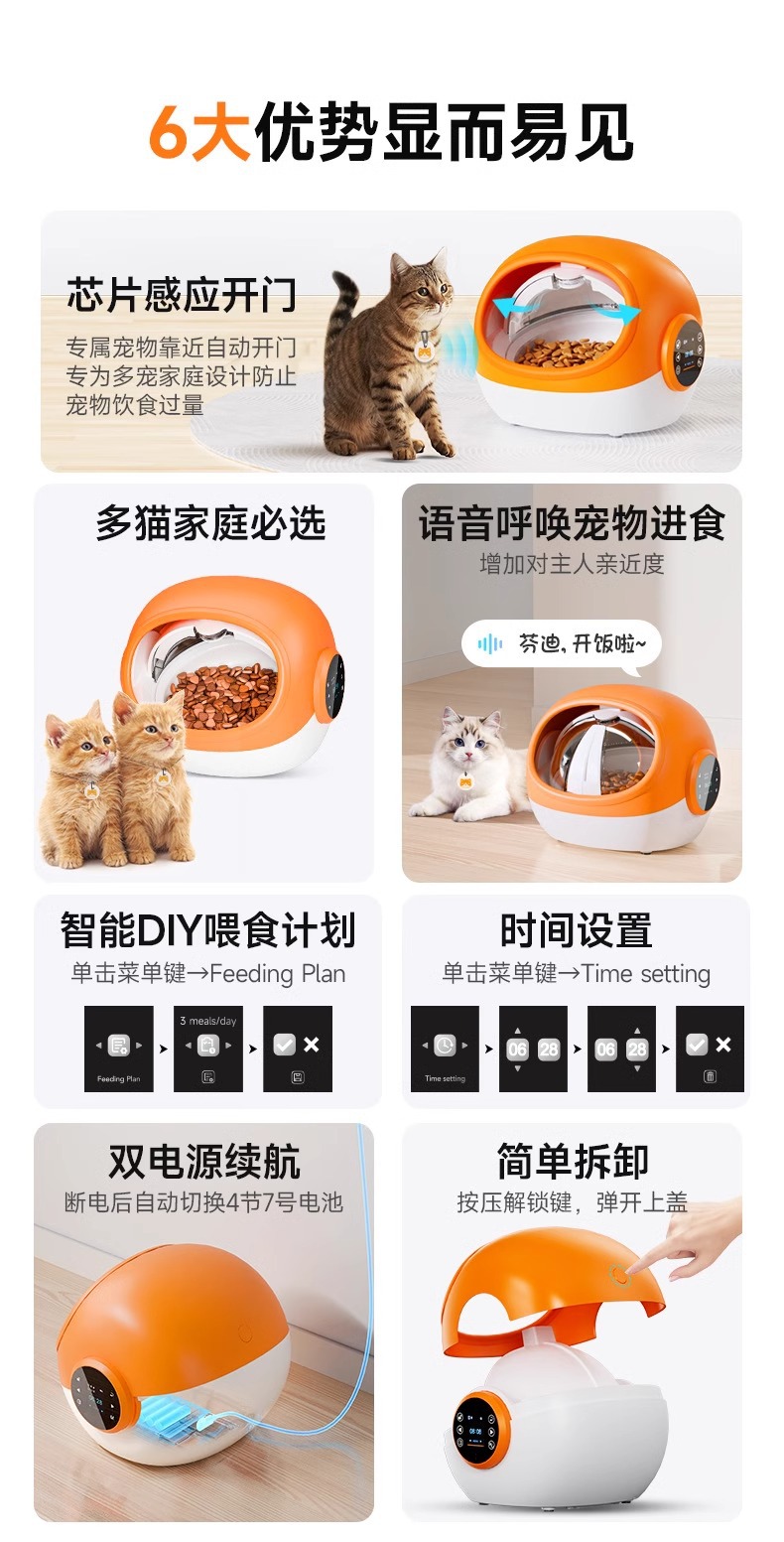 애완 동물 탐지 방지 스내치 칩 식별 멀티 고양이 자동 피더 타이밍 원격 제어 애완 동물 고양이 먹이 기계스토어 가기