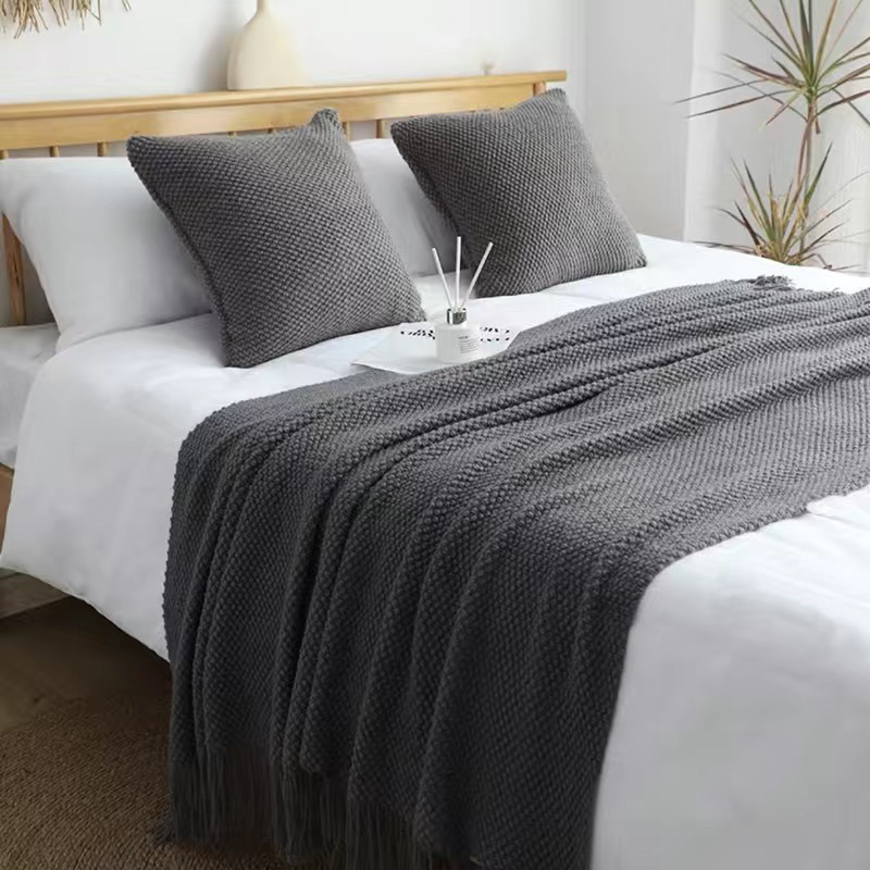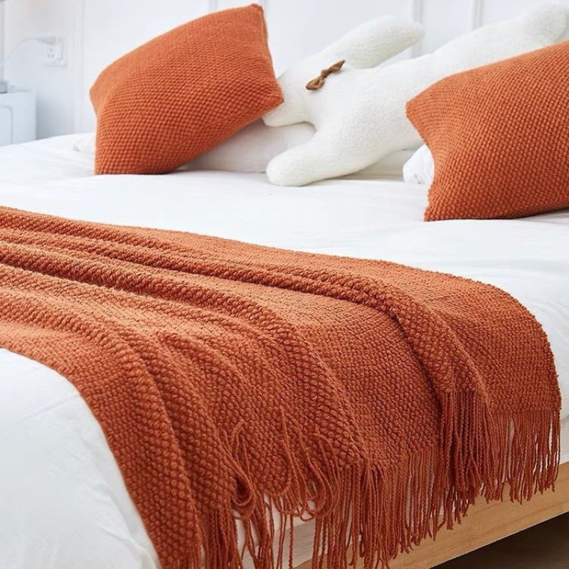 니트 담요 홈스테이 침대 끝 수건 담요 침대 거실 수건 낮잠 커버 담요 라이트 럭셔리 호텔 소파 담요