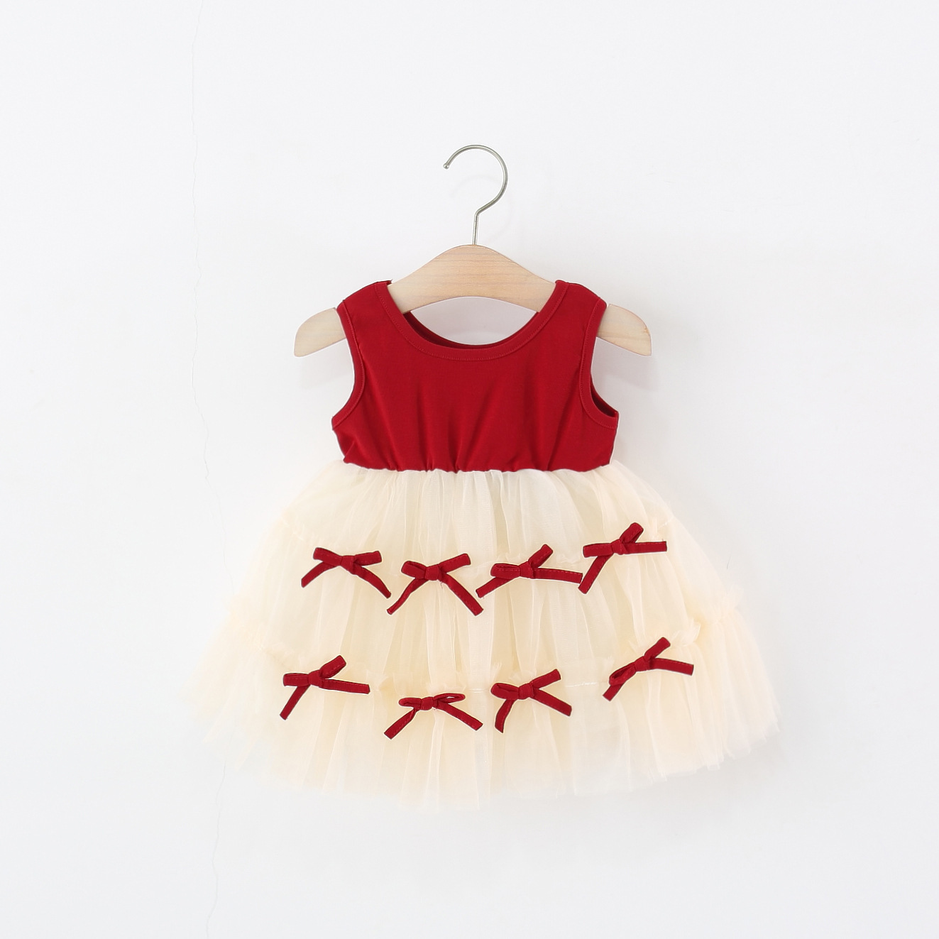 25 새로운 소녀 활 메쉬 원피스 아기 소녀 여름 원피스 아기 소녀 공주 도매