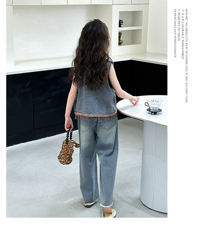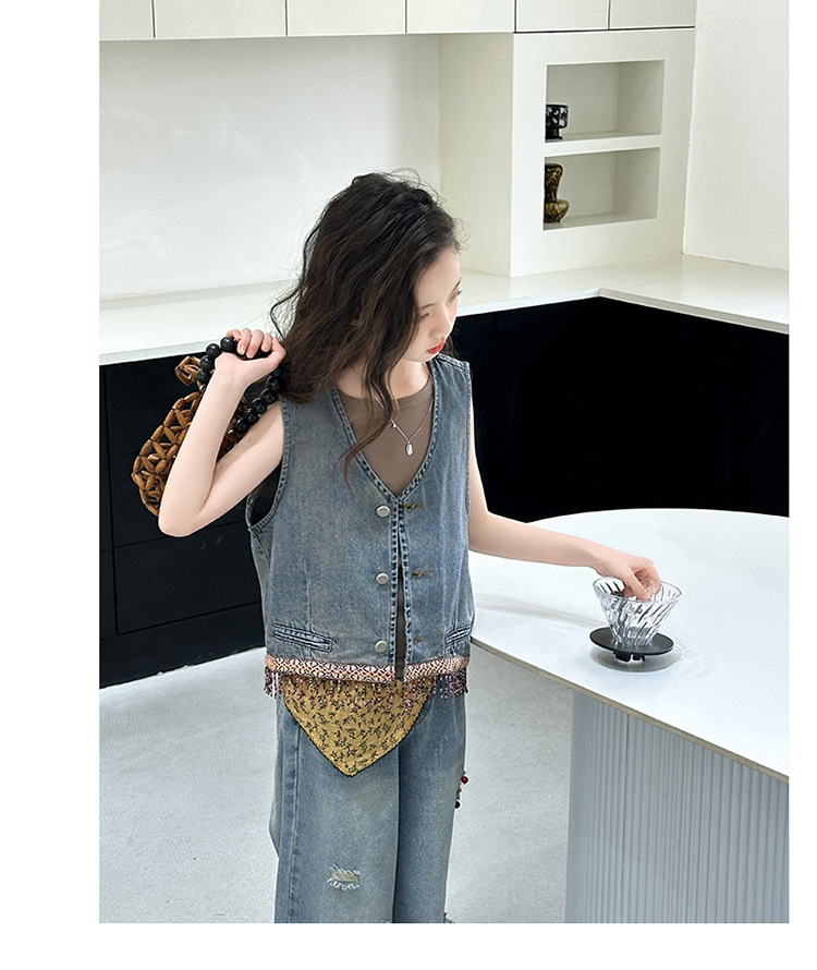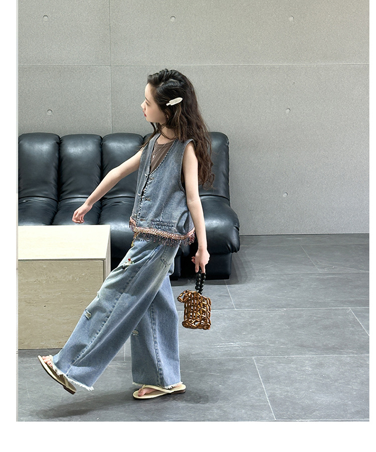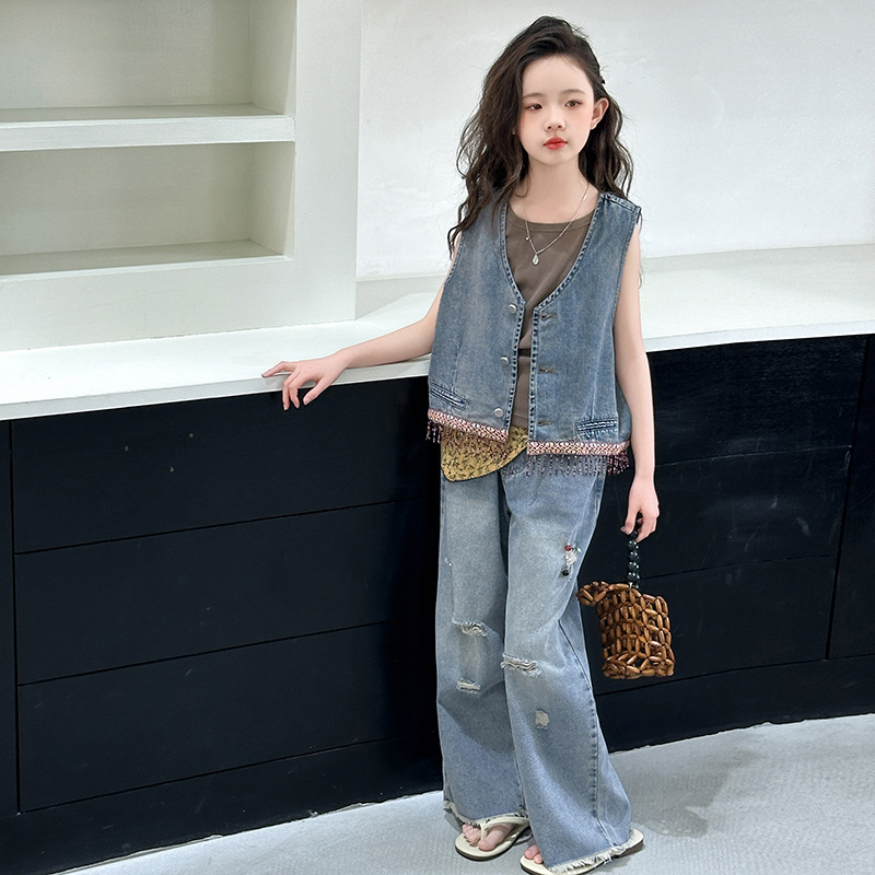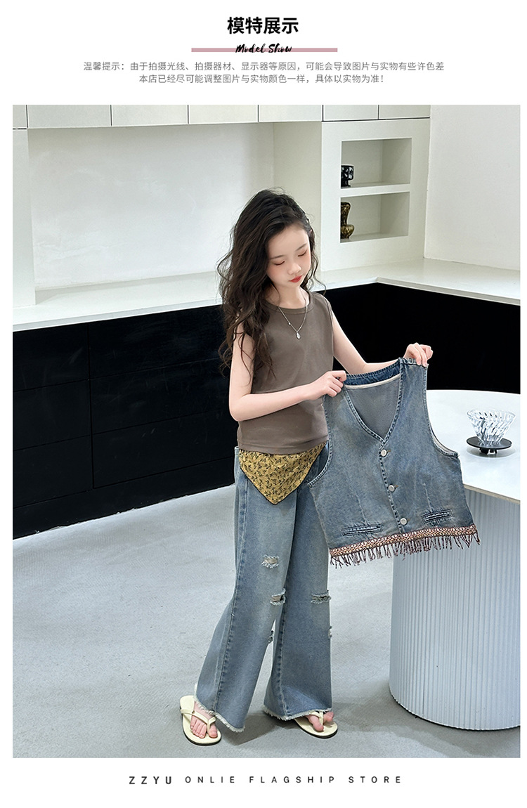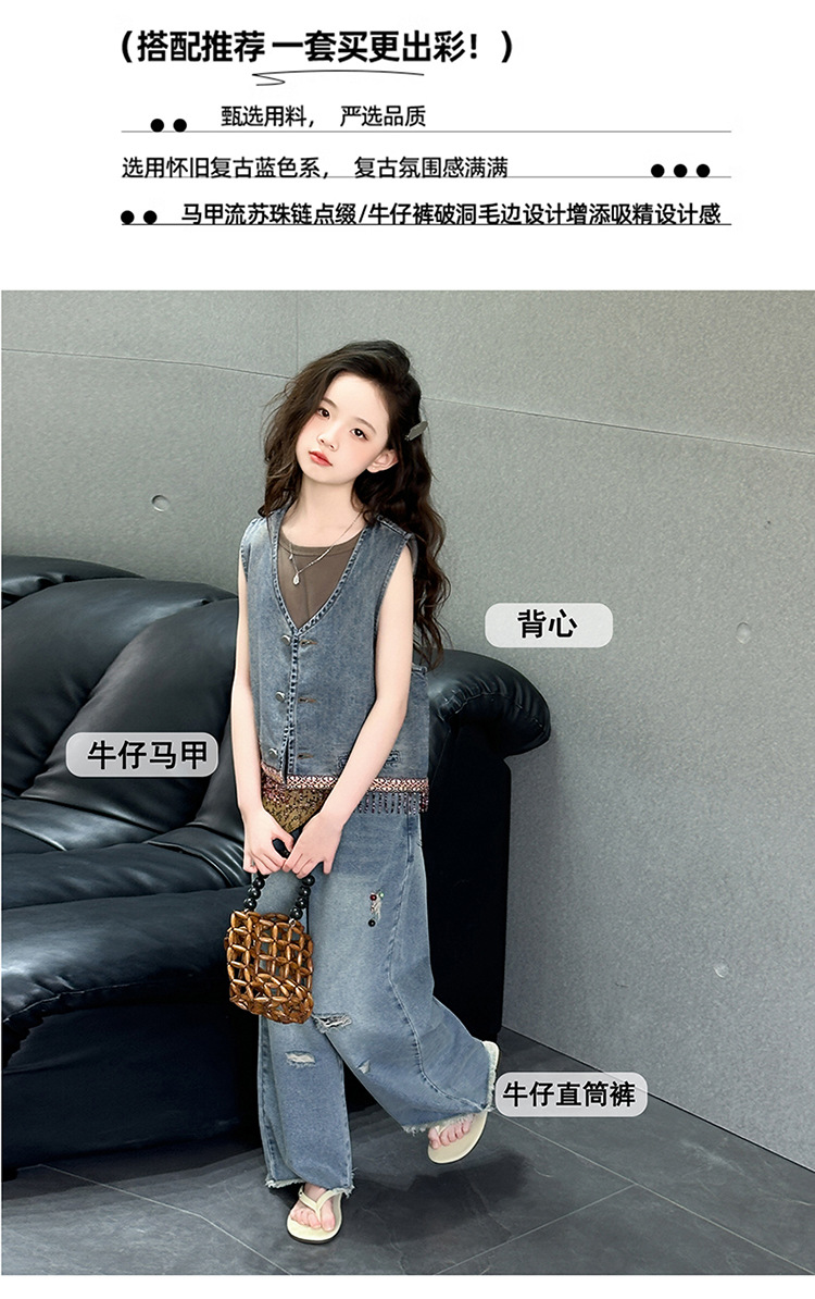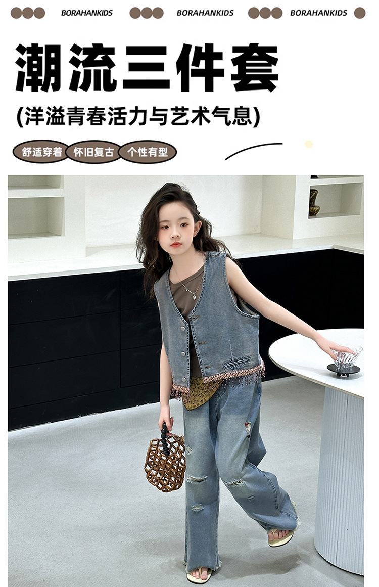 여자 여름 세트 아메리칸 레트로 찢어진 청바지 높은 허리 유행 멋진 패션 조끼 3 종 세트스토어 가기