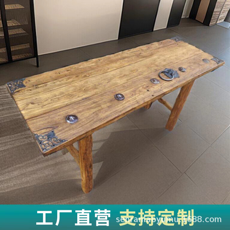 오래 된 느릅 나무 문 패널 테이블 빈티지 향수 바 테이블 오래 된 나무 테이블 로그 단단한 나무 차 테이블 차 테이블 민속스토어 가기