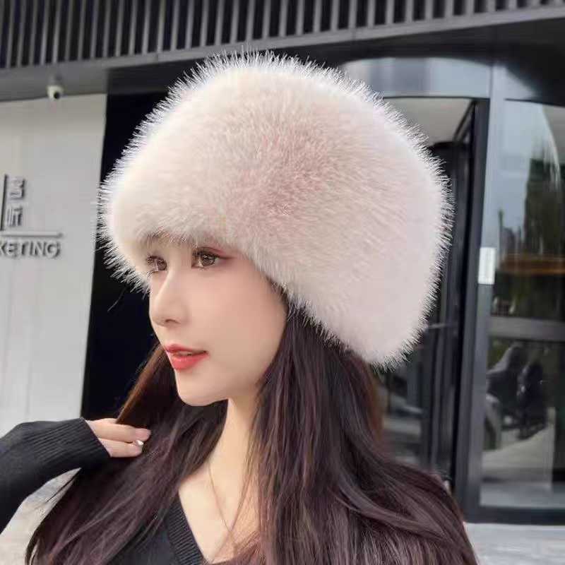 가을과 겨울 모조 여우 모피 겨울 두꺼운 따뜻한 모자 여성의 귀 보호 플랫 탑 요정 모자의 새로운 도매 한국어 버전스토어 가기