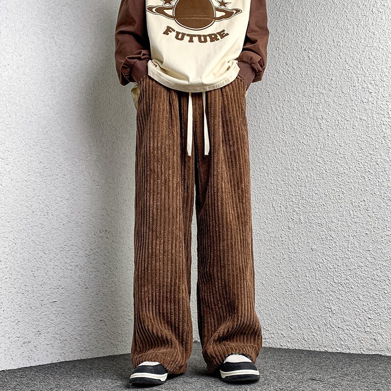 가을 N 남자 2025 플러스 사이즈 일본 홍콩 스타일 툴링 캐주얼 스트레이트 바지 코듀로이 중국 패션 와이드 다리 바지스토어 가기