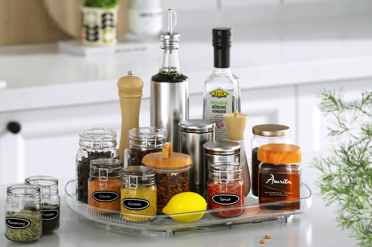 아마존 냉장고 턴테이블 보관함 직사각형 360도 회전 미끄럼 방지 트레이 주방 조미료 보관함