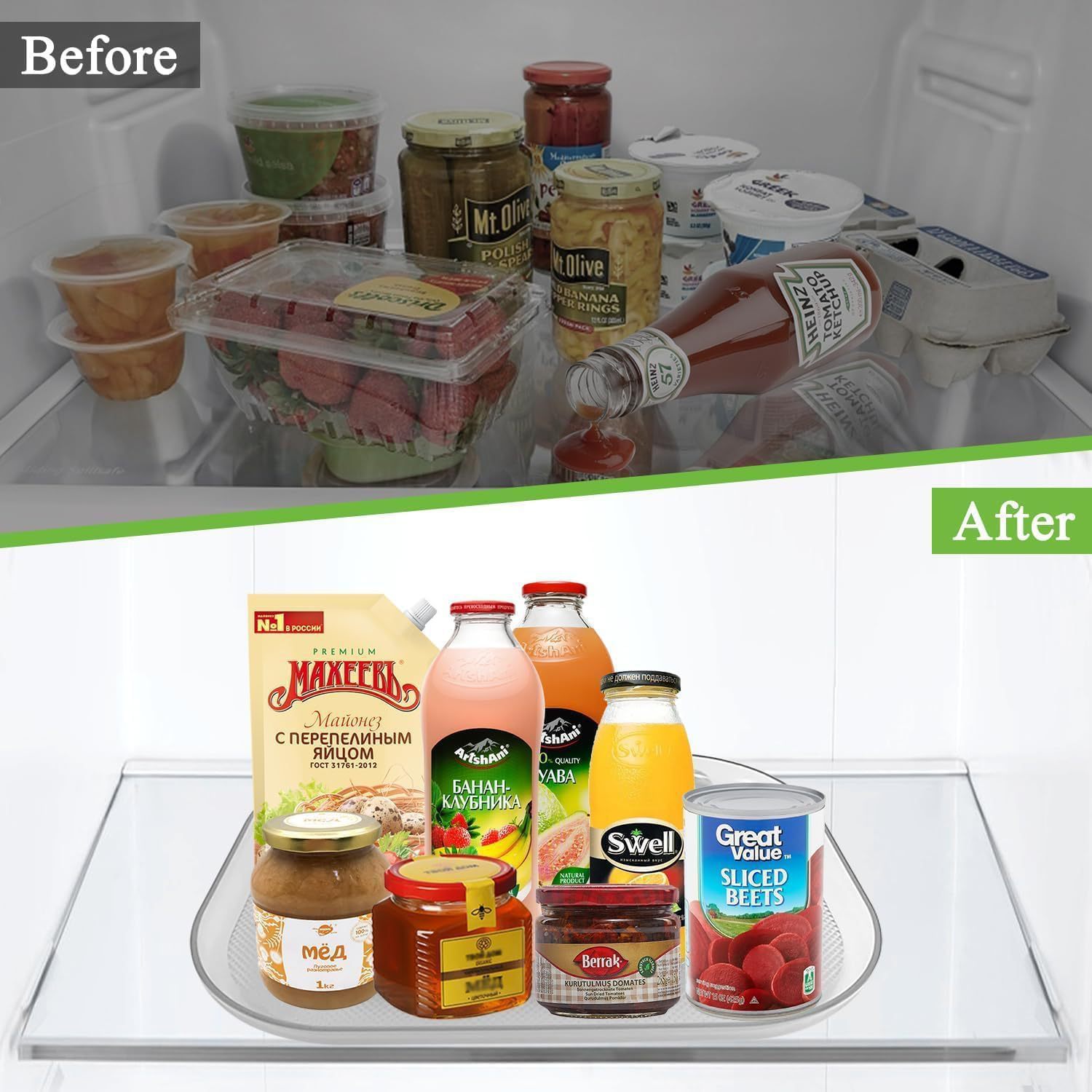 아마존 냉장고 턴테이블 보관함 직사각형 360도 회전 미끄럼 방지 트레이 주방 조미료 보관함스토어 가기