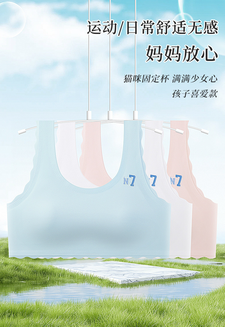 알몸 느낌 원활한 개발 소녀 조끼 스틸 링이없는 속옷 중소 어린이 1 ~ 2 단계 용 얇은 브래지어