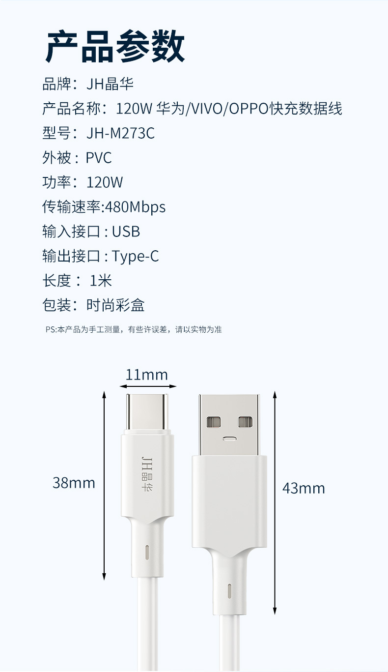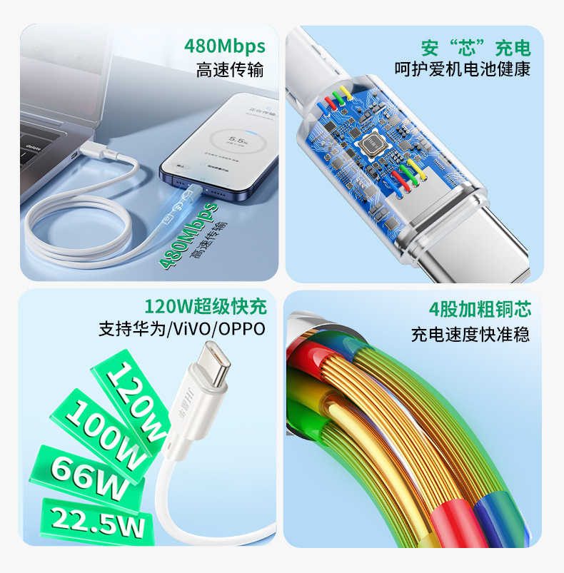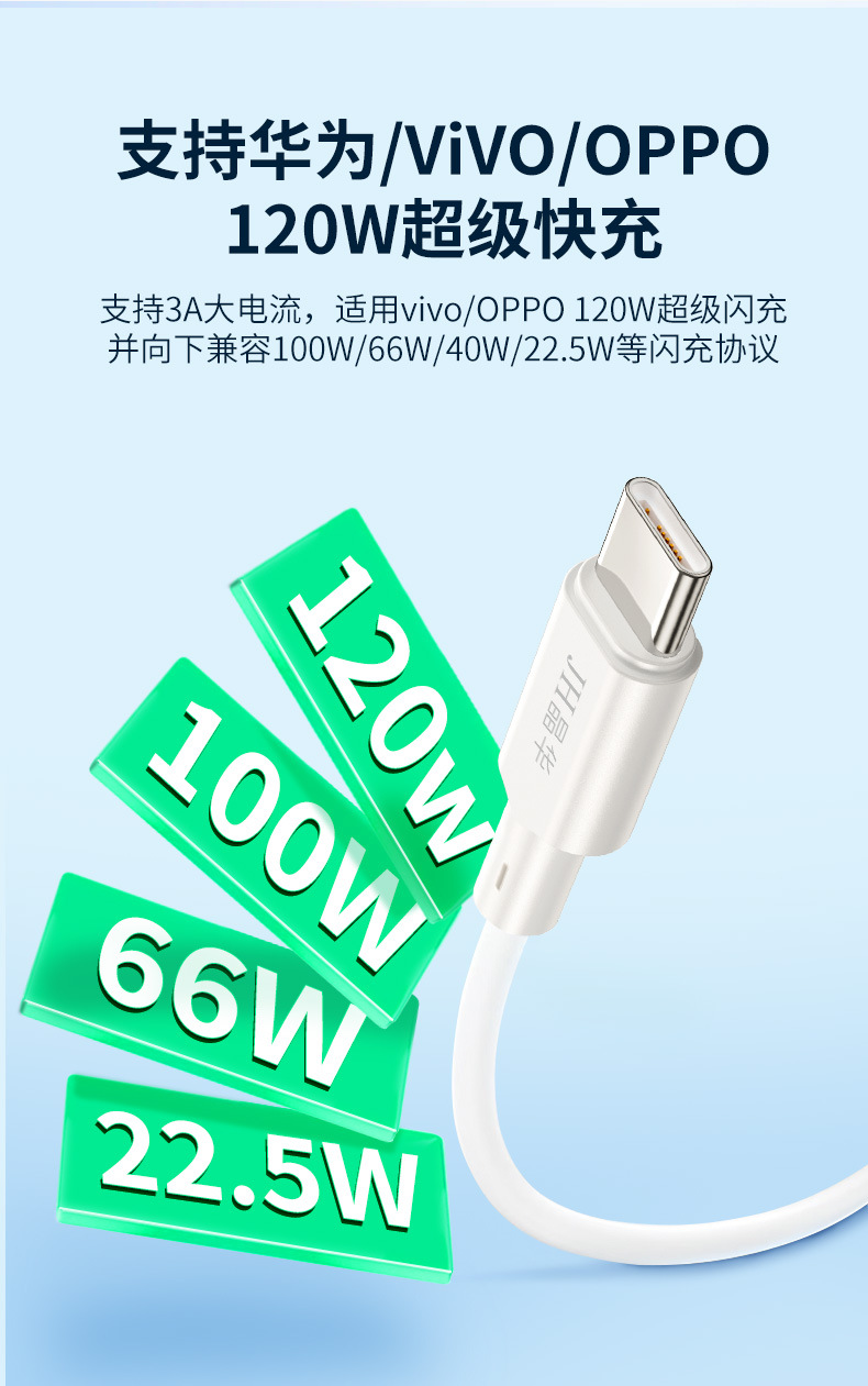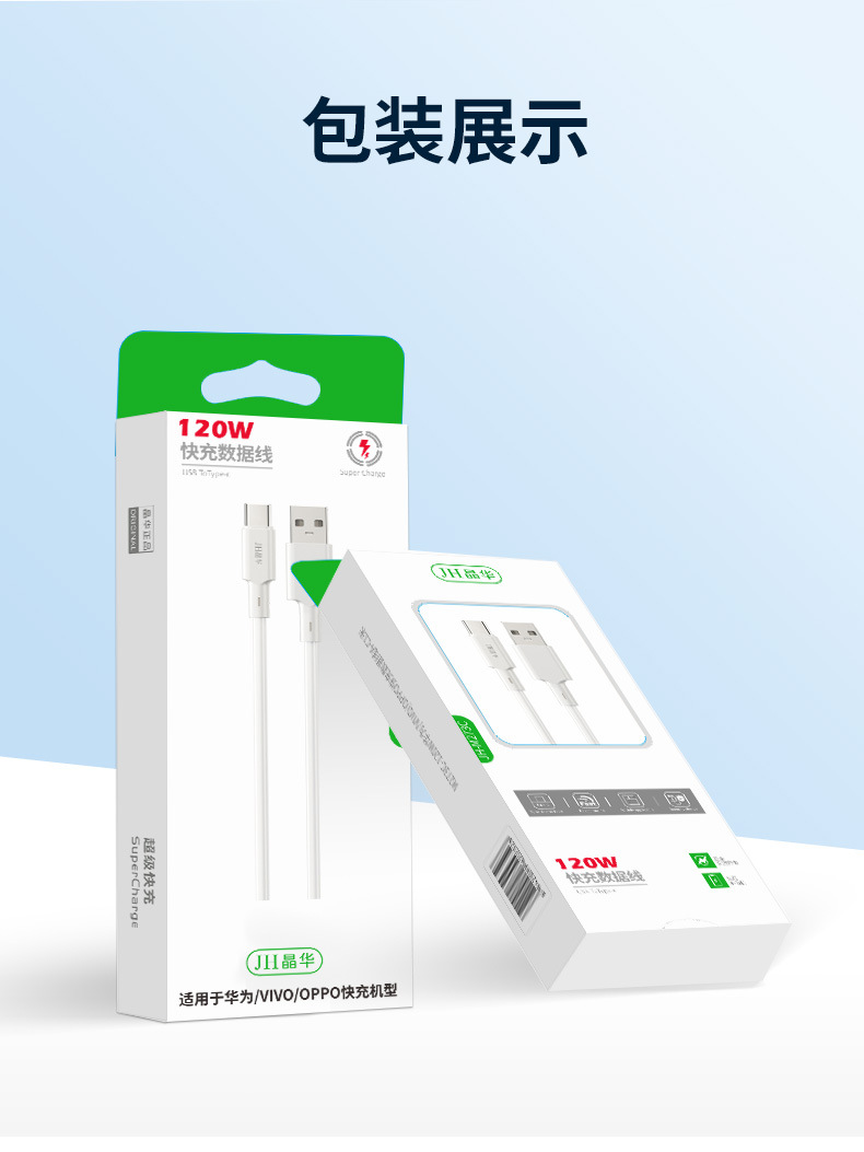 Jinghua 120Wtypec 고속 충전 데이터 라인은 화웨이 oppo/vivo 플래시 충전 휴대 전화 3A-CM273C 에 적합합니다.스토어 가기