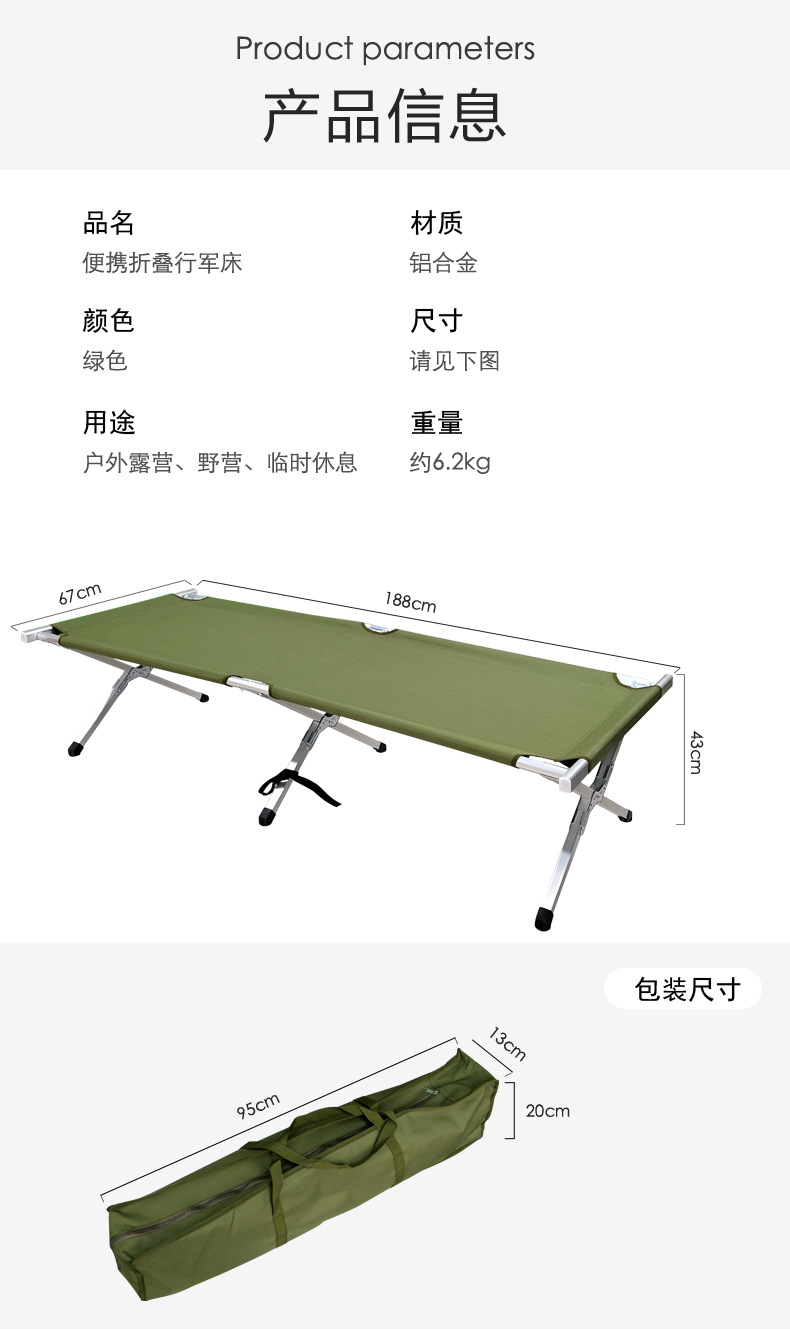 Soder Cross-border 야외 초경량 캠핑 침대 육군 캠핑 휴대용 접이식 침대 전술 초경량 단일 점심 침대스토어 가기