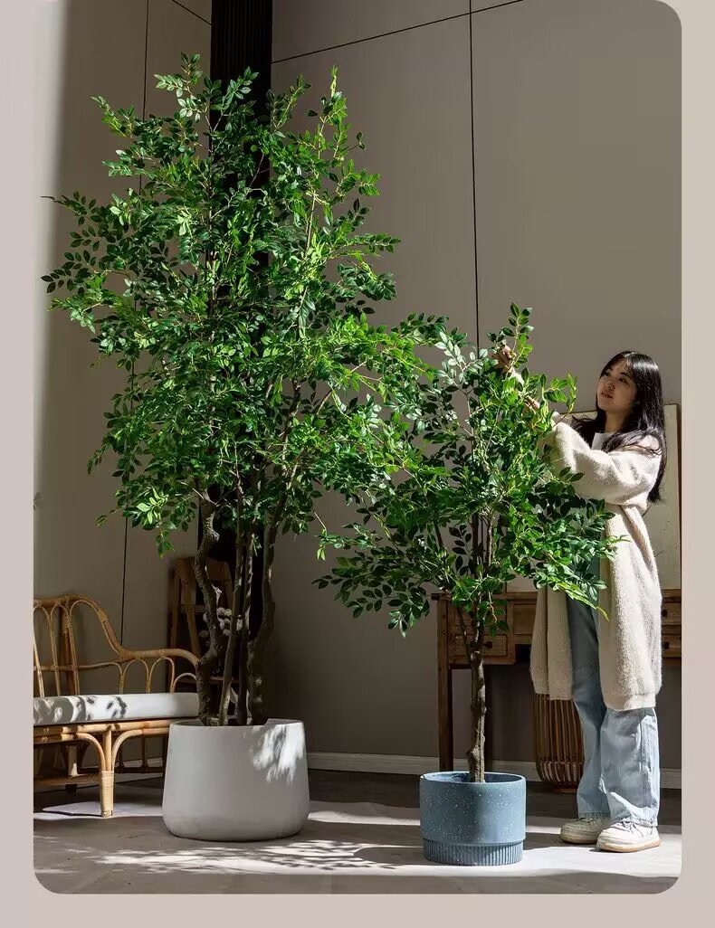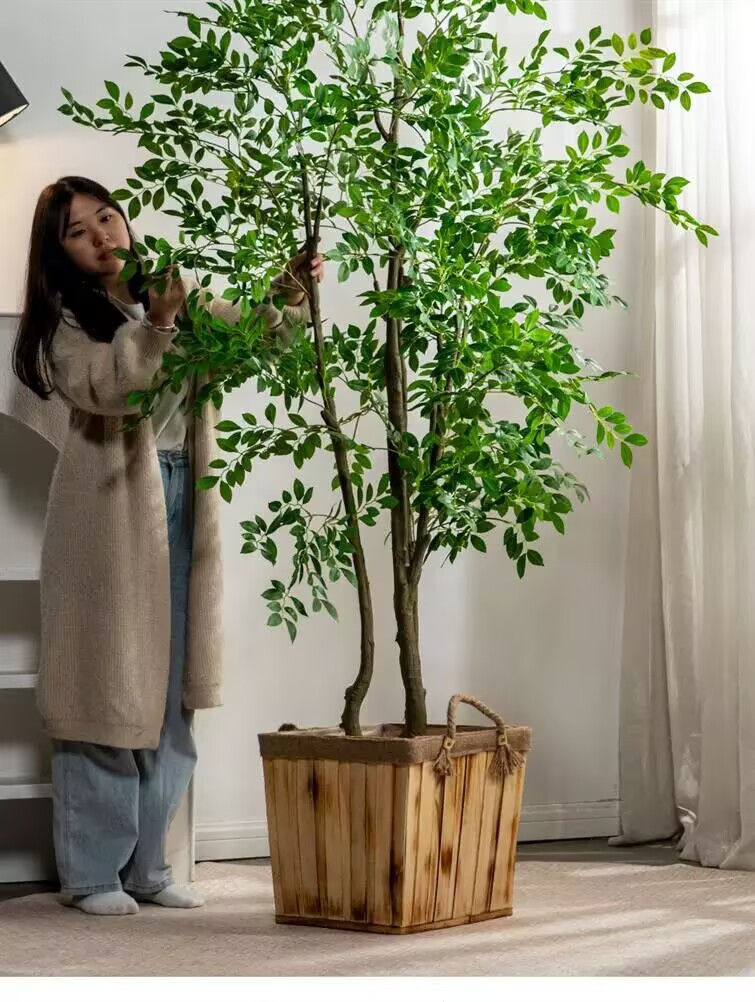 Yuqian 나무 장식 거실 바닥 대형 가짜 꽃 나무 가짜 나무 나무 녹색 식물 생체 공학 홈 장식