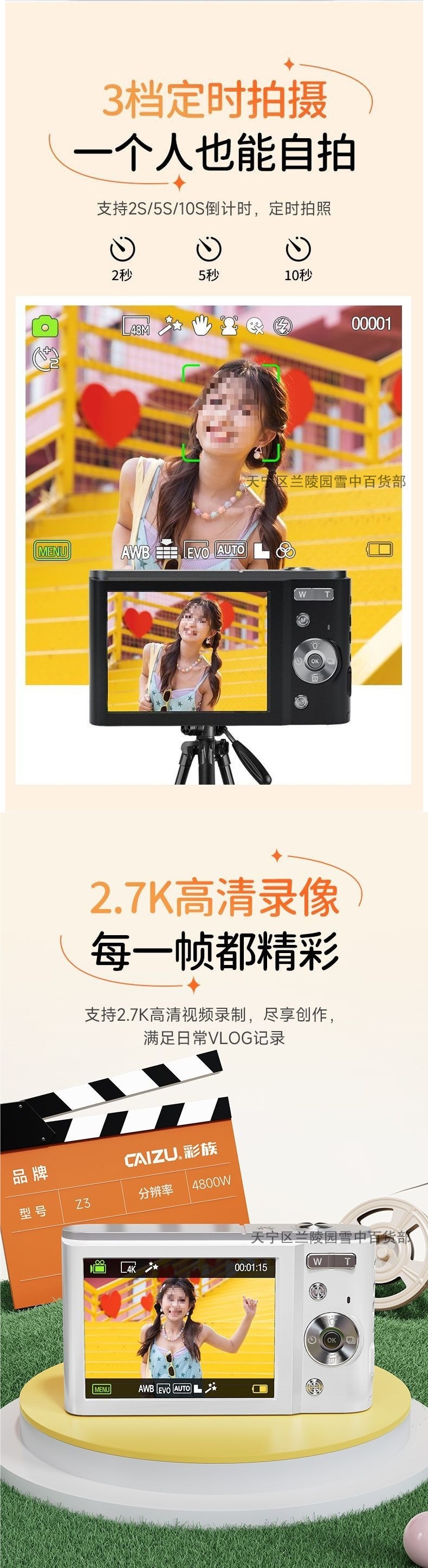 • 걸리 핑크 + 뷰티 필터 + 2.7K 초점 및 흔들림 방지 - 128G에 9,000개 이상의 사진과 비디오를 4시간 동안 저장 - 강력 추천